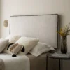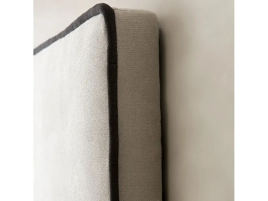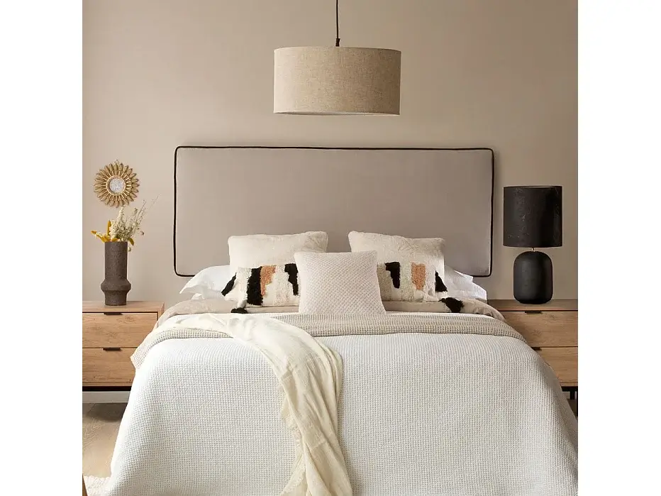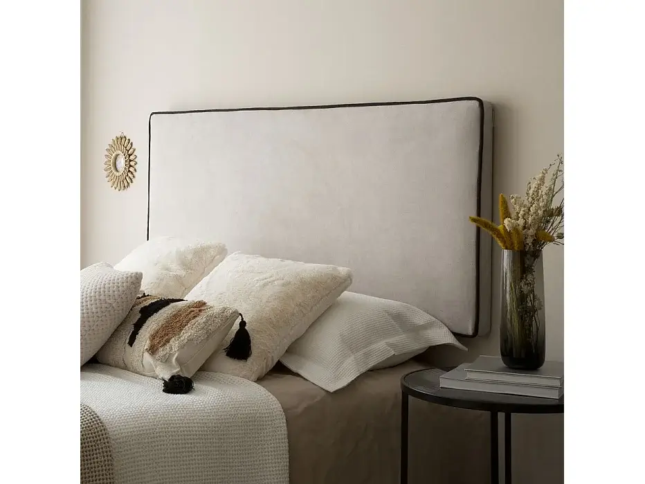 Our Madary upholstered headboard for a 150cm bed, with its minimalist style and stain-resistant fabric , will be the true centerpiece of your bedroom this season. Its beige upholstery combined with contrasting piping defines an elegant and trendy design where less is more.
