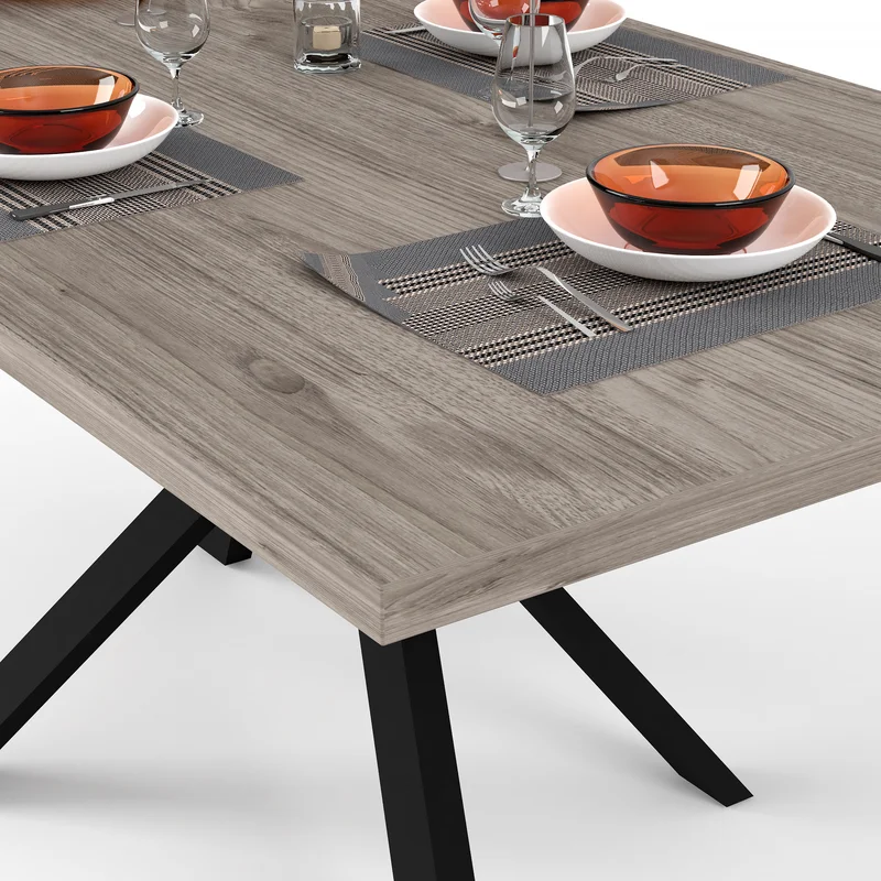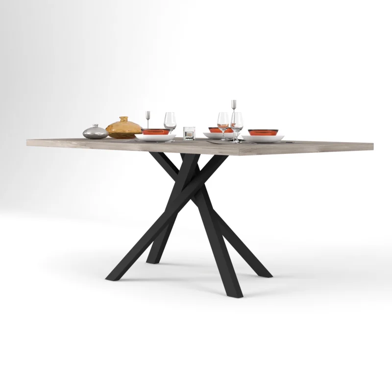 The Andrew Dining Table boasts a sleek steel frame for modern elegance.