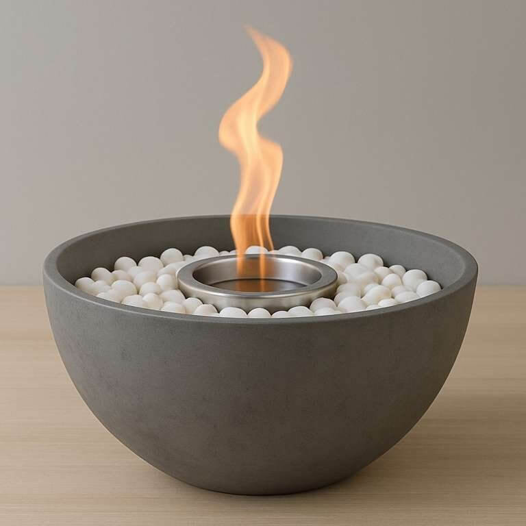 Aura Tabletop Firepit – Modern Concrete Fire Bowl with Stones and Flame Burner