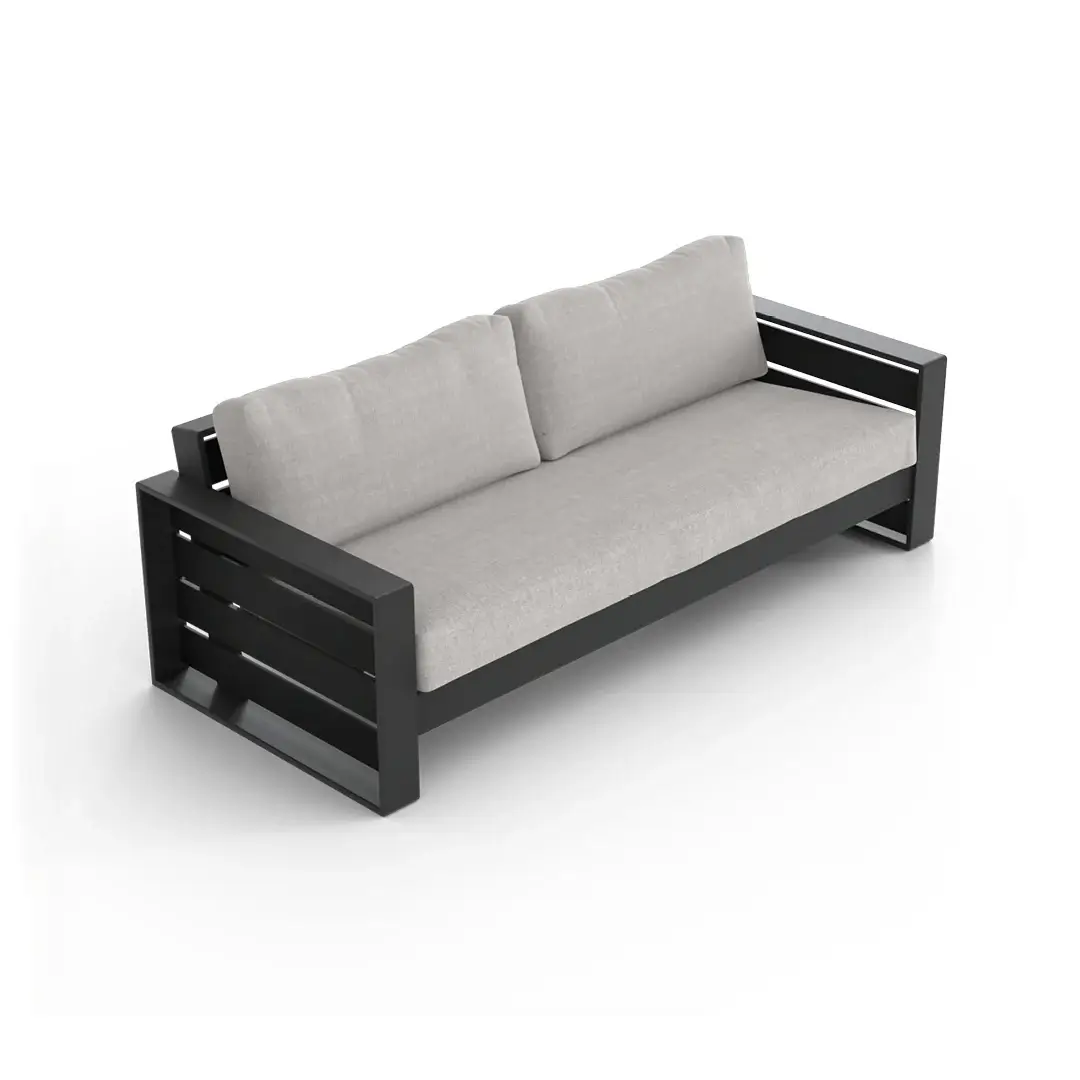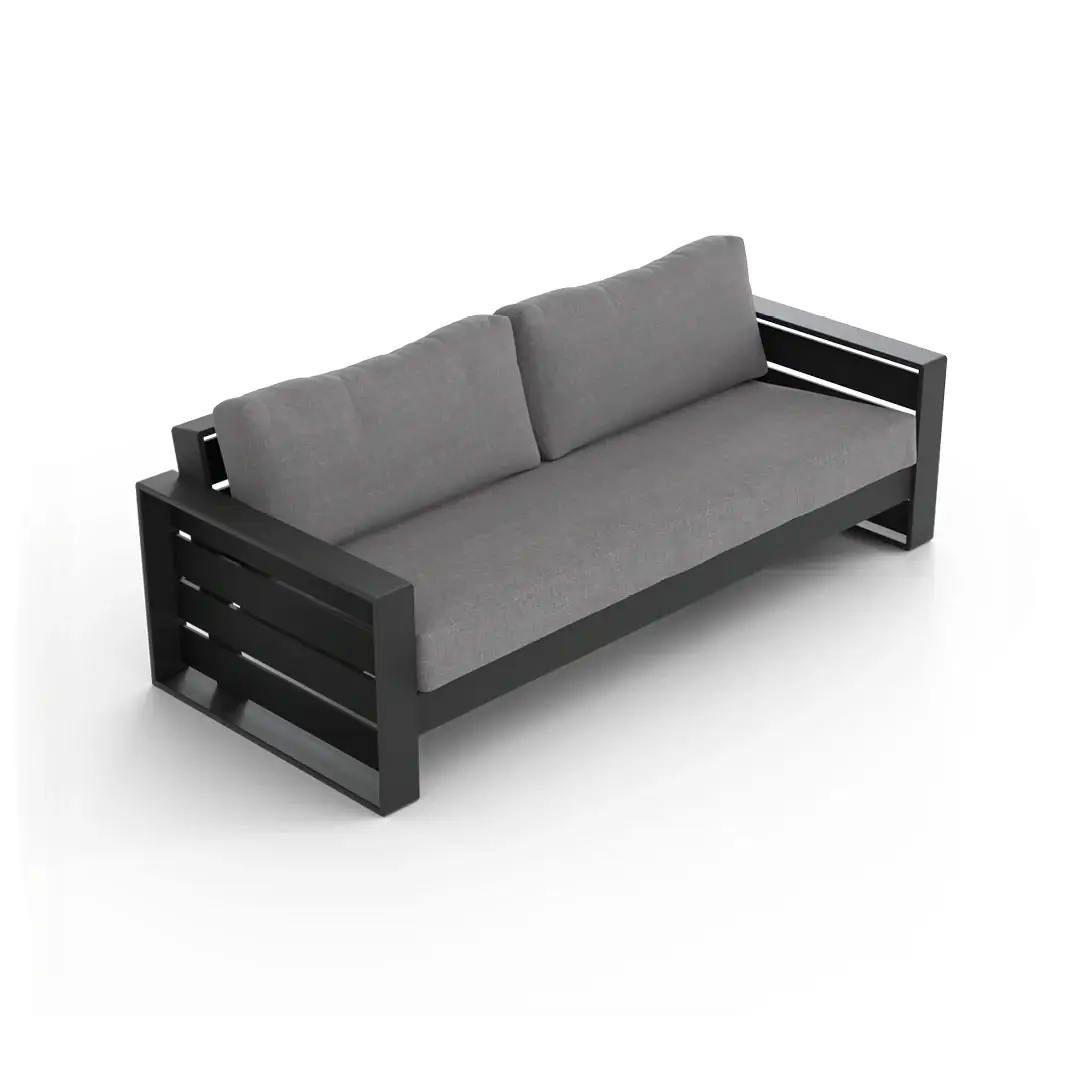 Bring refined comfort to your outdoor living with the Avelon Outdoor Aluminum Sofa. Built with sleek, powder-coated aluminum in a modern silhouette and paired with generous cushions, this three-seater offers both durability and luxury. The sofa is designed to resist weather, fading, and stains — perfect for stylish patios and entertaining spaces.