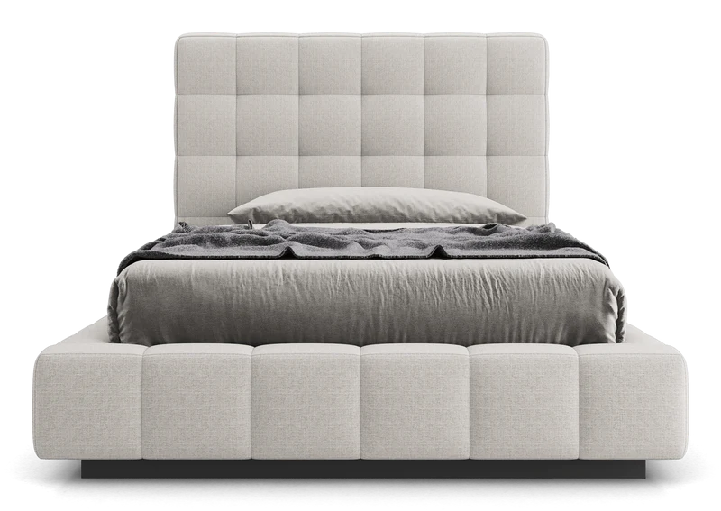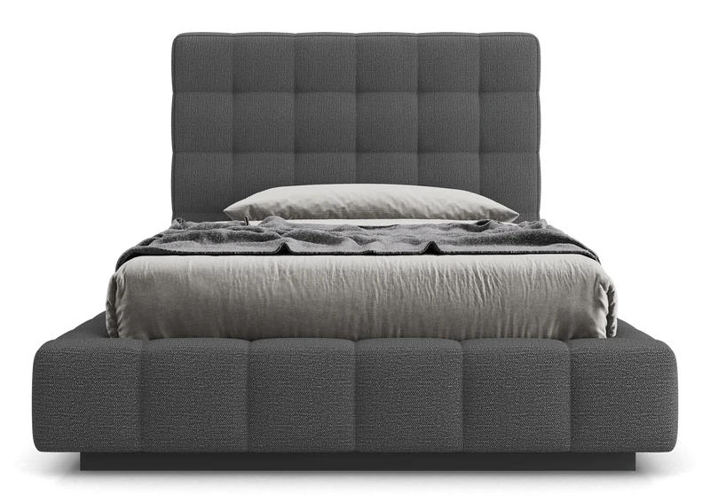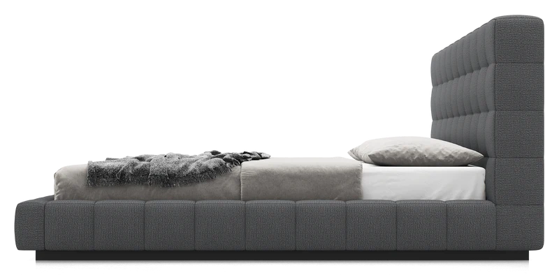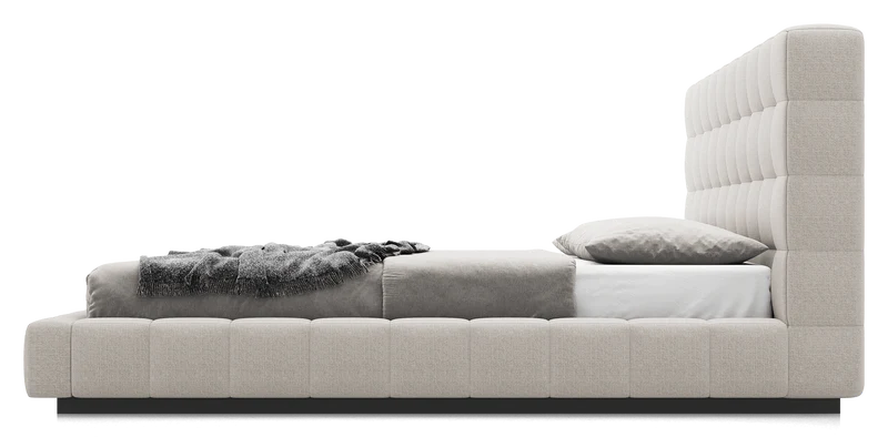 Premium fabric upholstery with a basketweave pattern is seamlessly applied from the headboard to the frame. The mattress sits snuggly atop a solid pine-slat base for stylistic durability and added comfort.