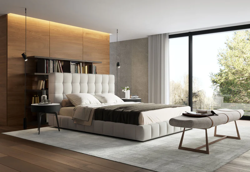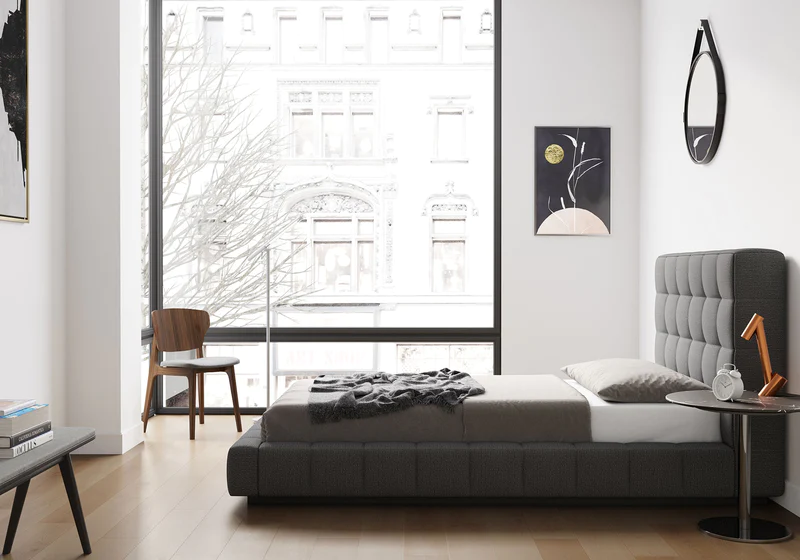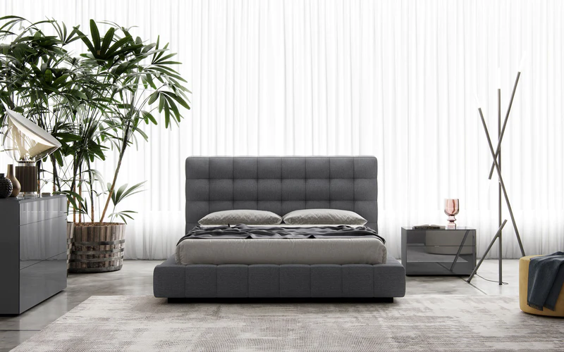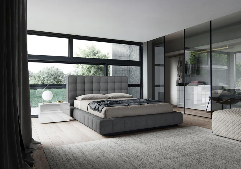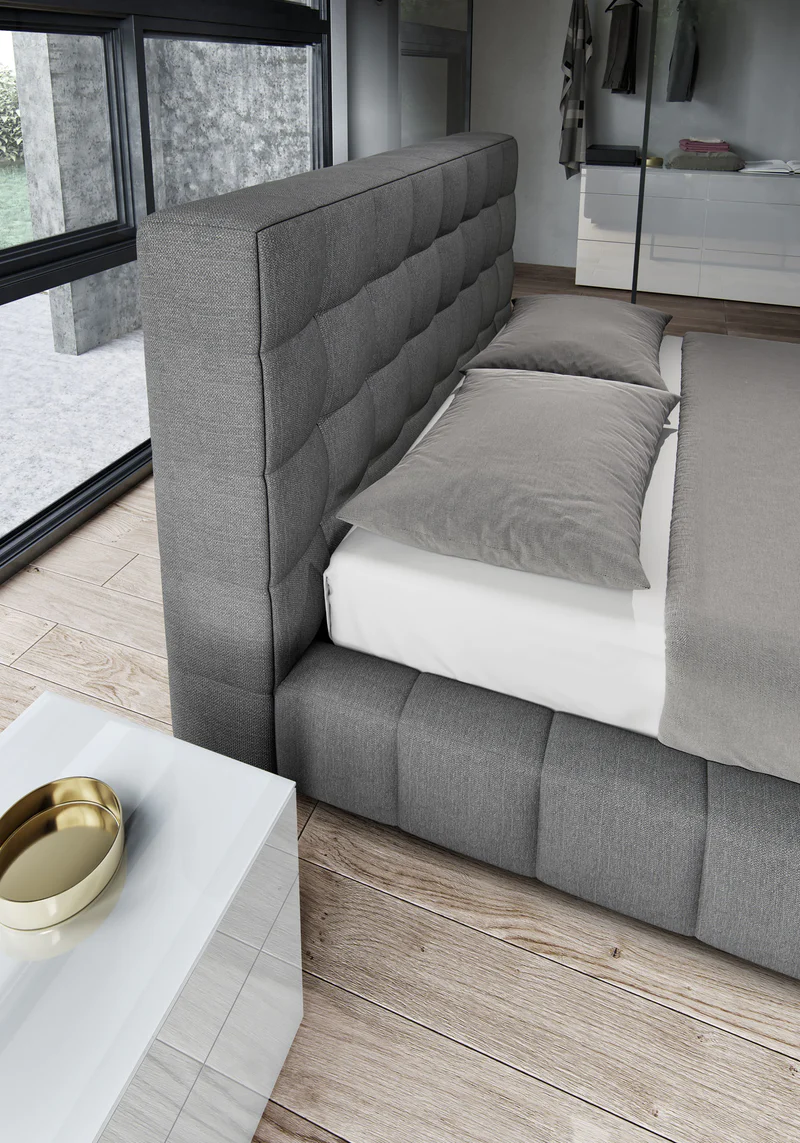 Elegance defines the Bella Bedroom Set with its square tufted upholstery and evenly padded symmetry.