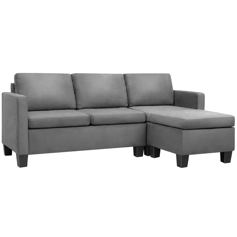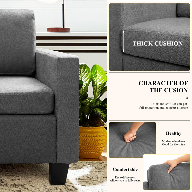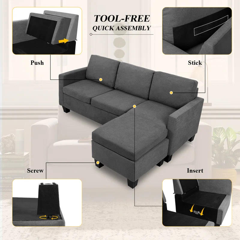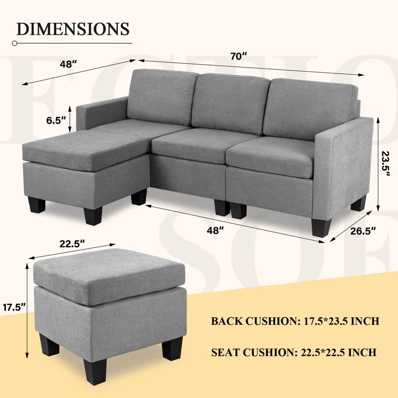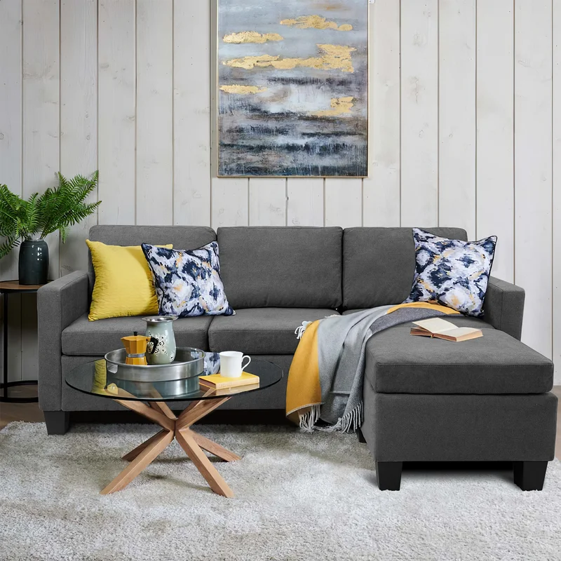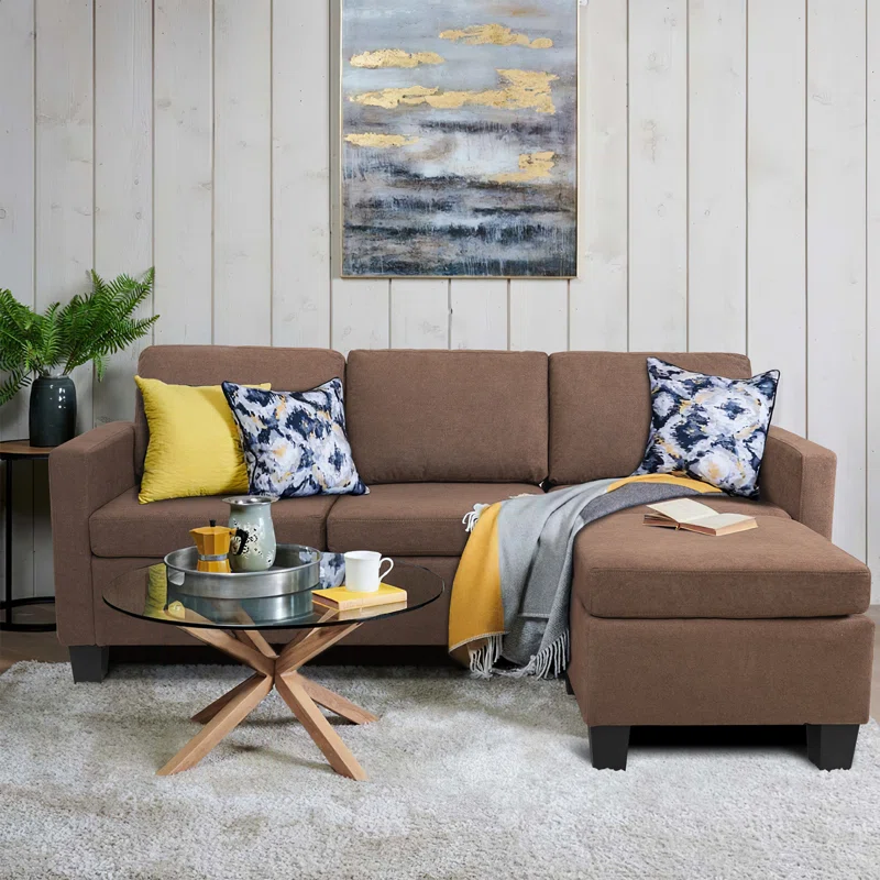 With its petite size, this 72” sofa and chaise sectional is just right for homes where space is a premium. It’s built with a solid and engineered wood frame and sits on black, slightly tapered legs. This sectional features 100% cotton upholstery and comes in your choice of color to match your decor. Its foam-filled cushions offer just-right support while you read or relax, and it boasts a pillow back and square arms for a tailored touch. Plus, it has removable cushions and is resistant to fading, scratches, and tears, making this sectional great for homes with kids and pets.