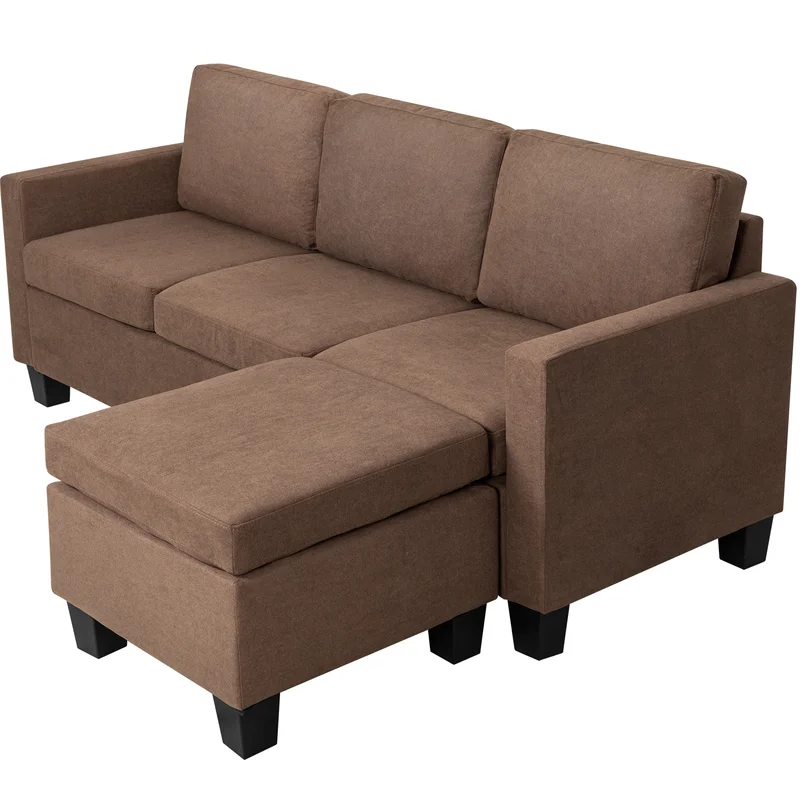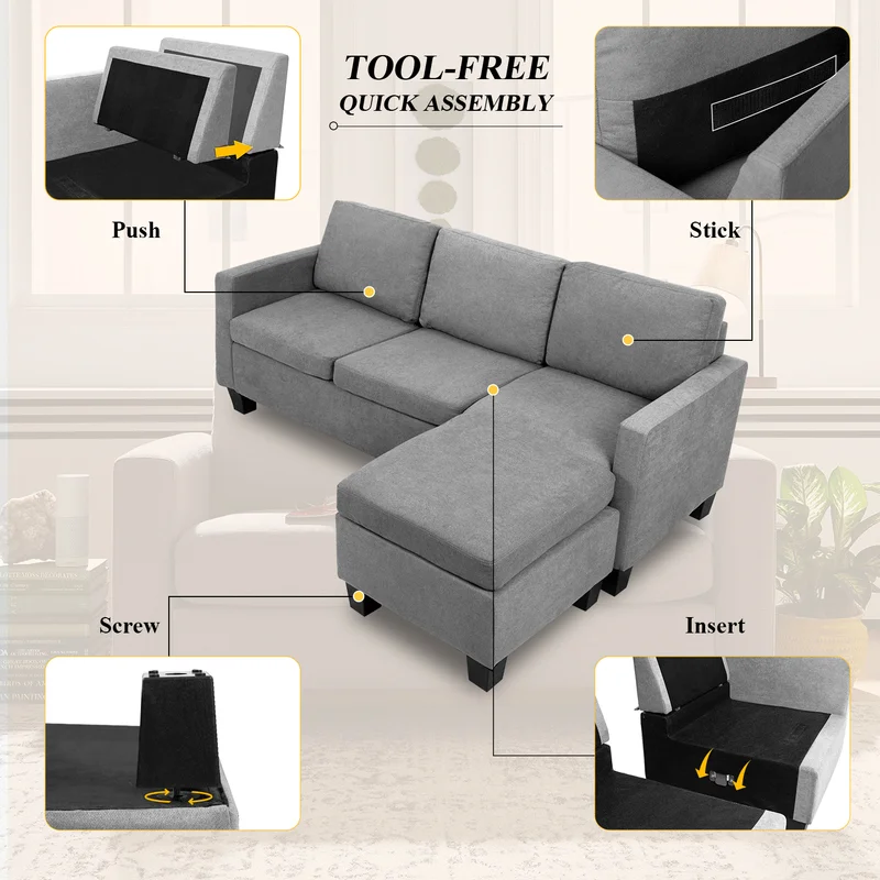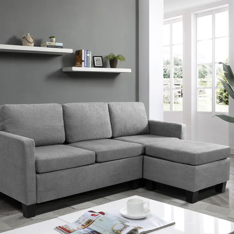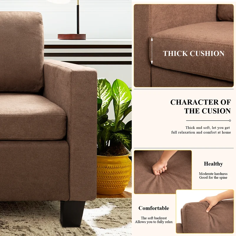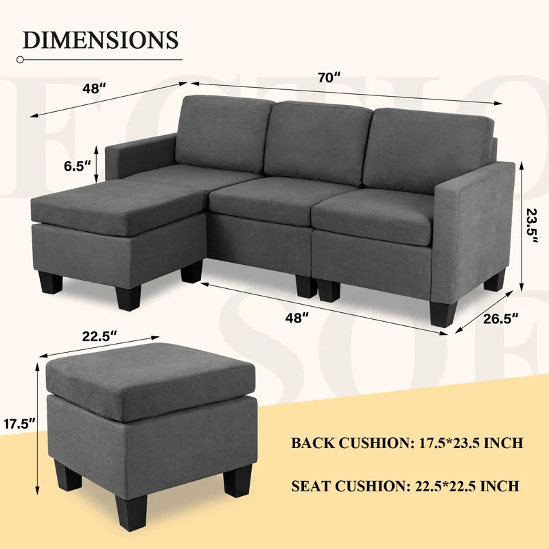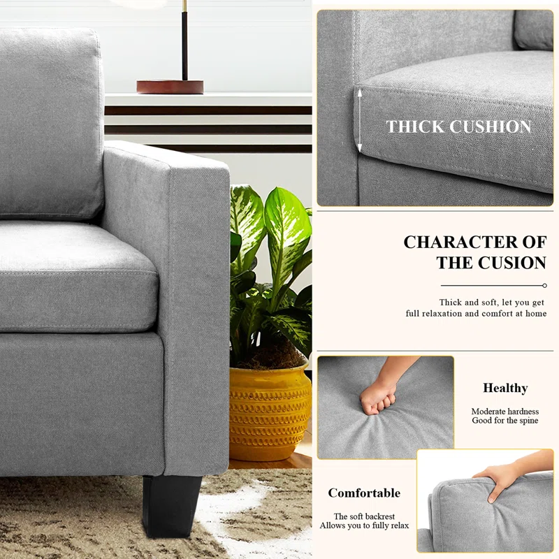 With its petite size, this 72” sofa and chaise sectional is just right for homes where space is a premium. It’s built with a solid and engineered wood frame and sits on black, slightly tapered legs. This sectional features 100% cotton upholstery and comes in your choice of color to match your decor. Its foam-filled cushions offer just-right support while you read or relax, and it boasts a pillow back and square arms for a tailored touch. Plus, it has removable cushions and is resistant to fading, scratches, and tears, making this sectional great for homes with kids and pets.