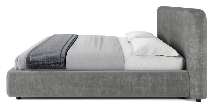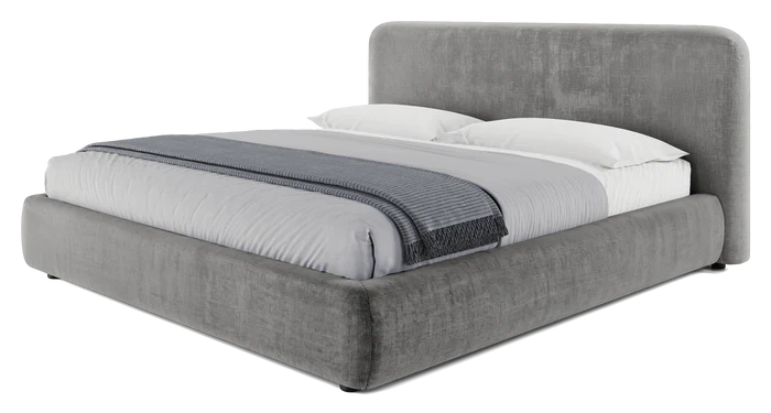Featuring elegantly rounded profiles upholstered in a soft durable texture, this luxurious bed exudes sophistication and comfort. The solid wood supports, and frame provide a robust foundation, while the padded headboard and frame offer a plush touch, inviting you to unwind.