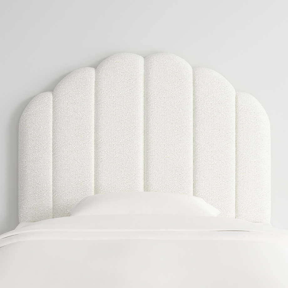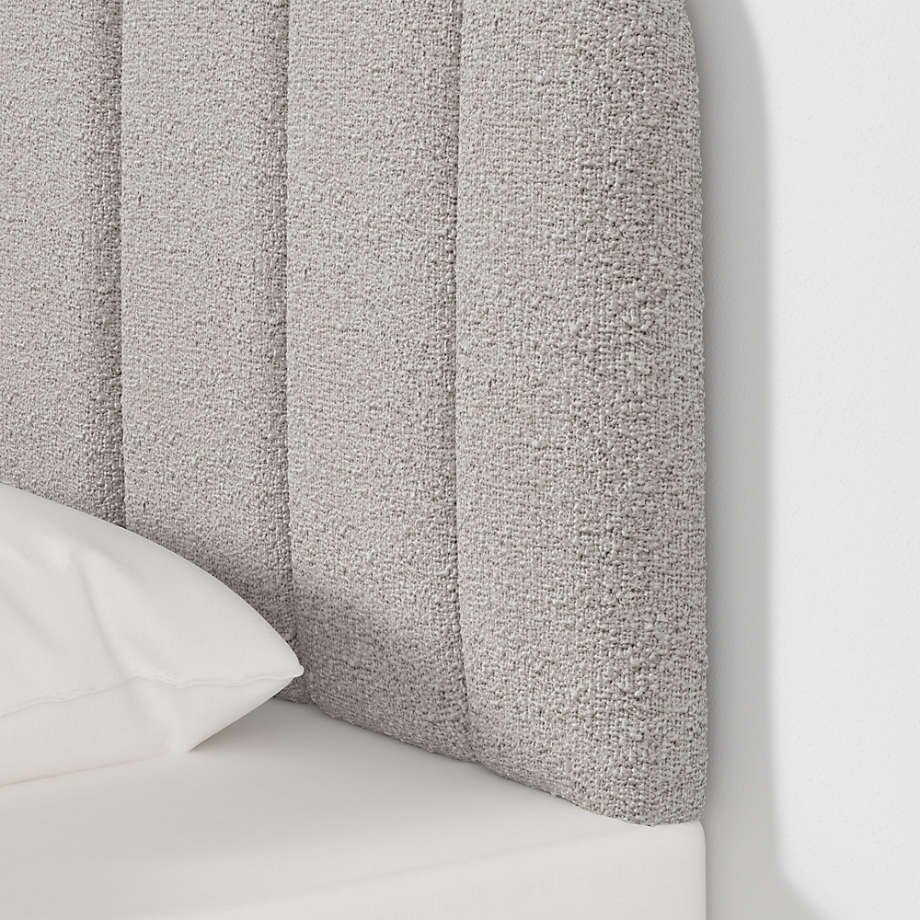 Instantly elevate dorm room comfort and style with this wall headboard upholstered in a nubby grey boucle. Elegantly tufted with vertical channels, the generously padded and irresistibly textured headboard curves a scalloped arch to create a comfy-cozy spot for studying, reading, and lounging.