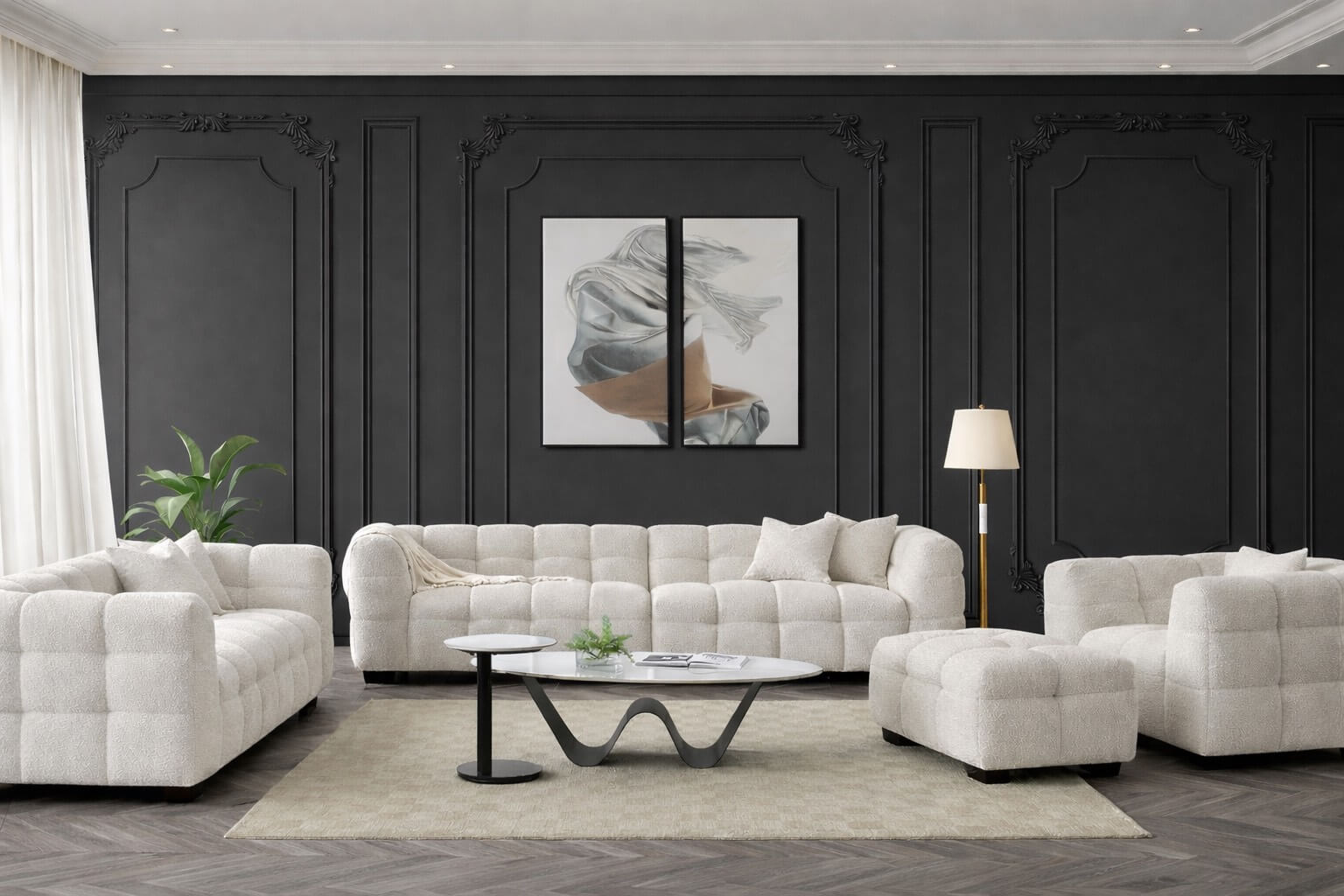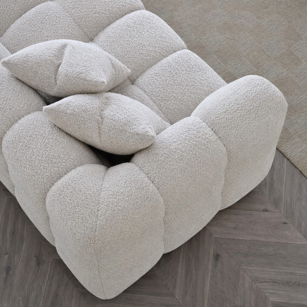 Whether styled as a complete lounge set or selected as individual statement pieces, the Charlotte Modular Stitch Collection brings effortless elegance comfort and durability into your home. Perfect for those seeking a modern bouclé sofa collection that balances design and everyday living.