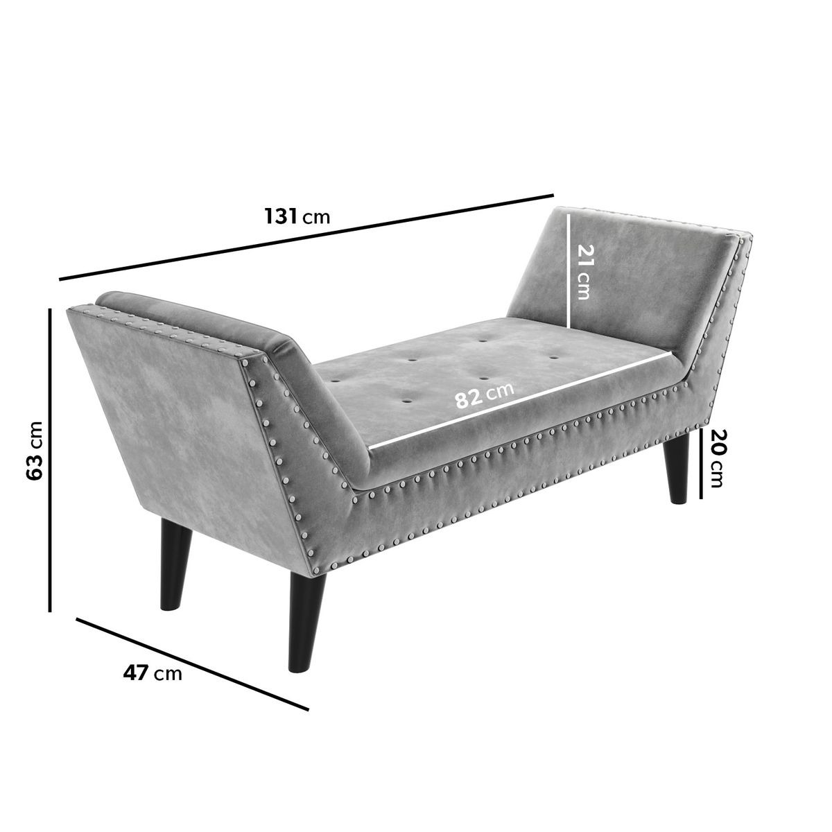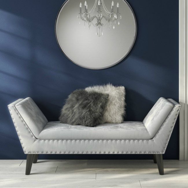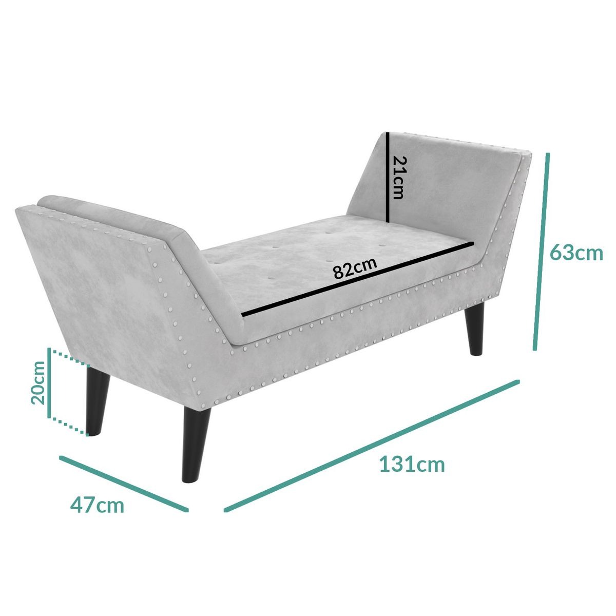 Create the perfect spot to relax with this U-shaped velvet bench. Ideal for placing at the end of your bed or underneath your window sill. The sloped arm rests and light grey plush velvet upholstery offer a comfortable place to sit, whilst the stud detailing makes this a great statement piece. With minimal assembly required, you will be ready to relax in style in no time.