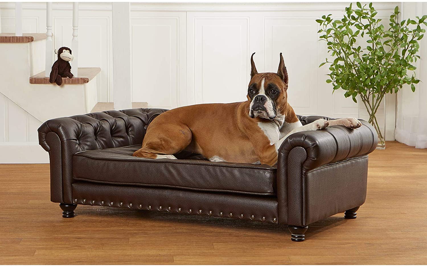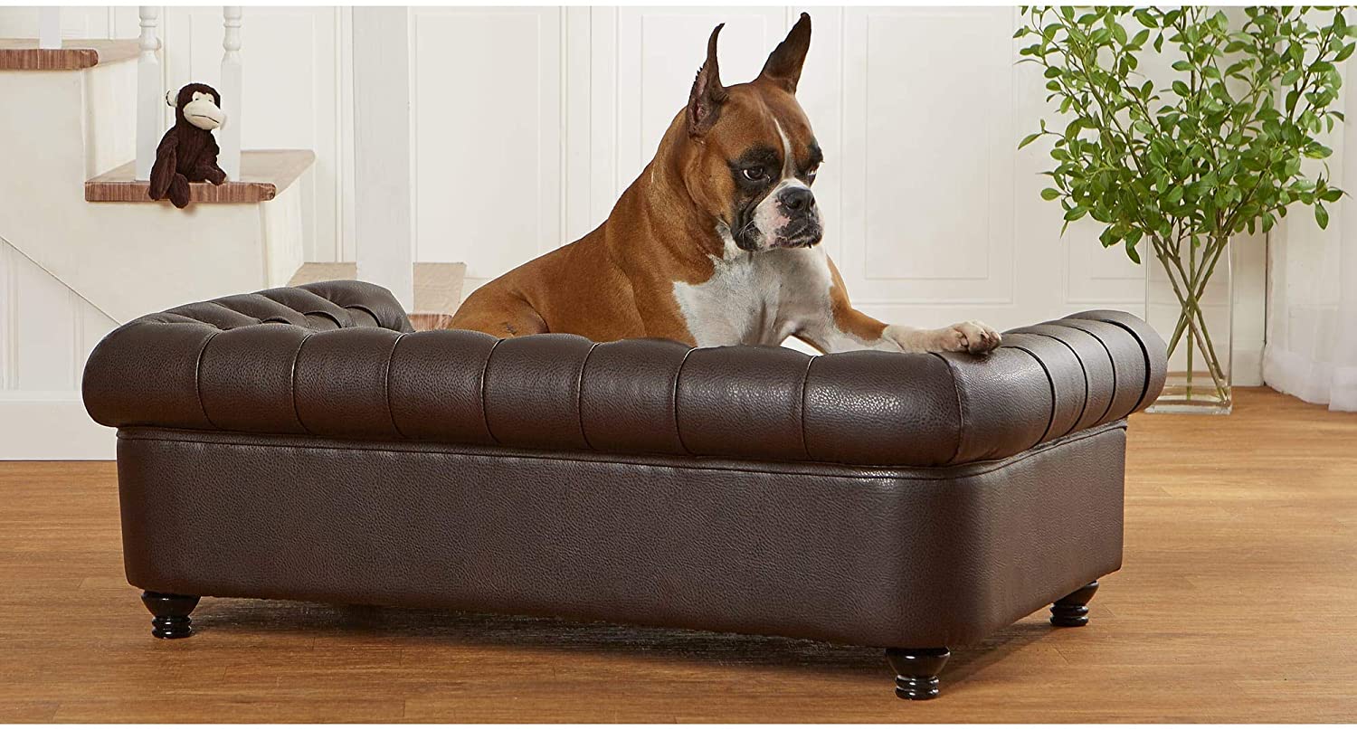 Dog Sofa provides ultimate relaxation, sophistication and comfort for your x-large dog. The easy to clean 14″ sitting area has a foam cushion that fits pets of all ages up to 60 lbs.