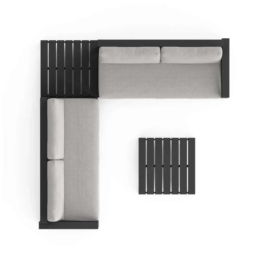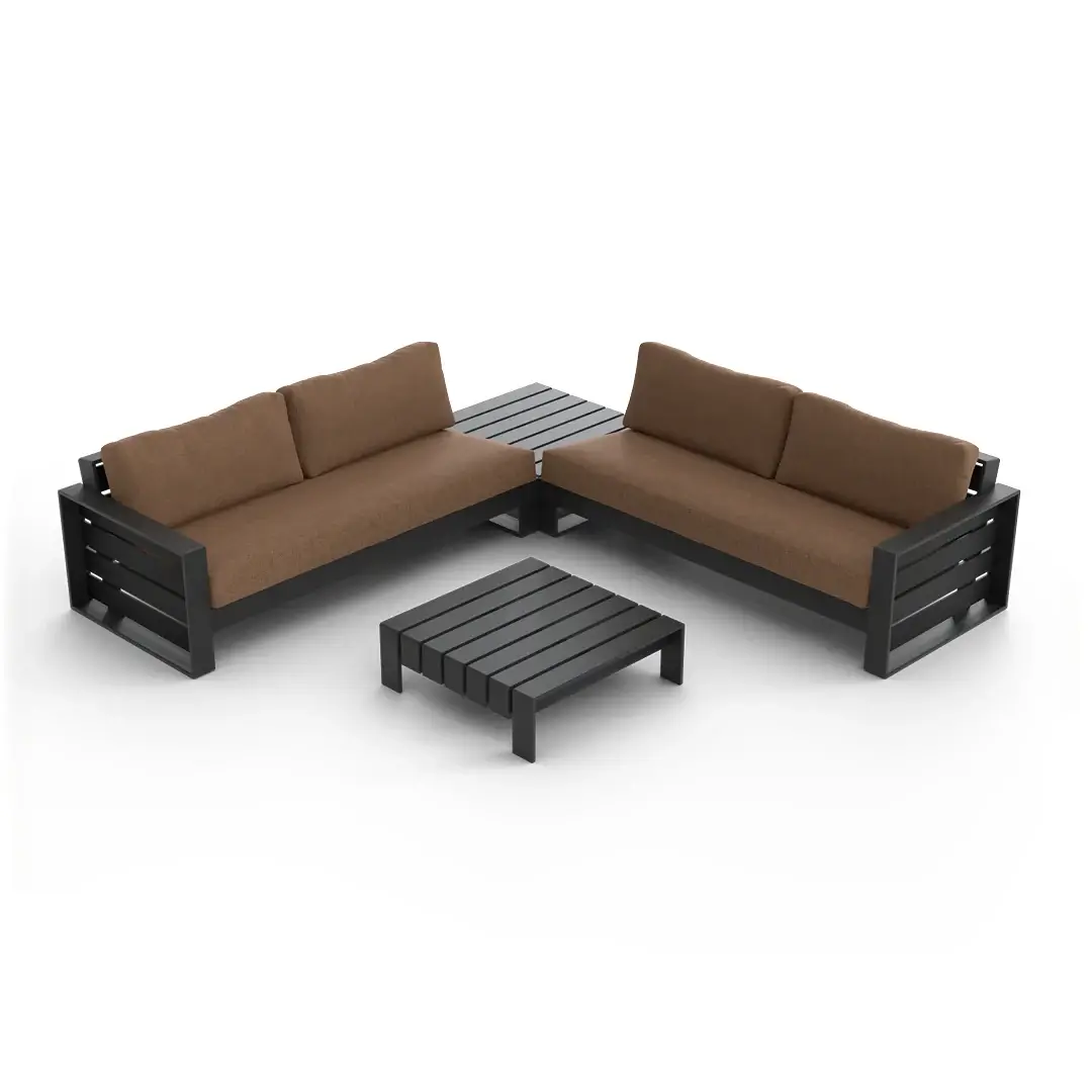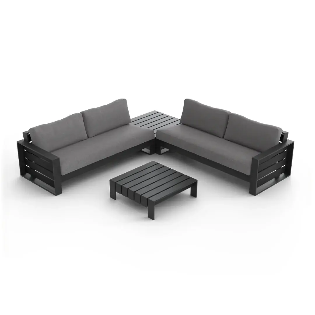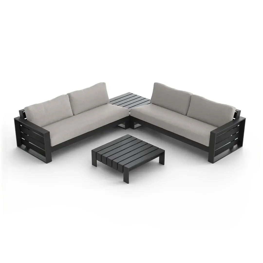 Elevate your outdoor living with the Elara Modular Outdoor Sectional — a sleek 4-piece aluminum set comprising left-arm and right-arm sofas plus two corner tables. Designed for flexibility, this modular set allows you to customize your layout and expand over time.