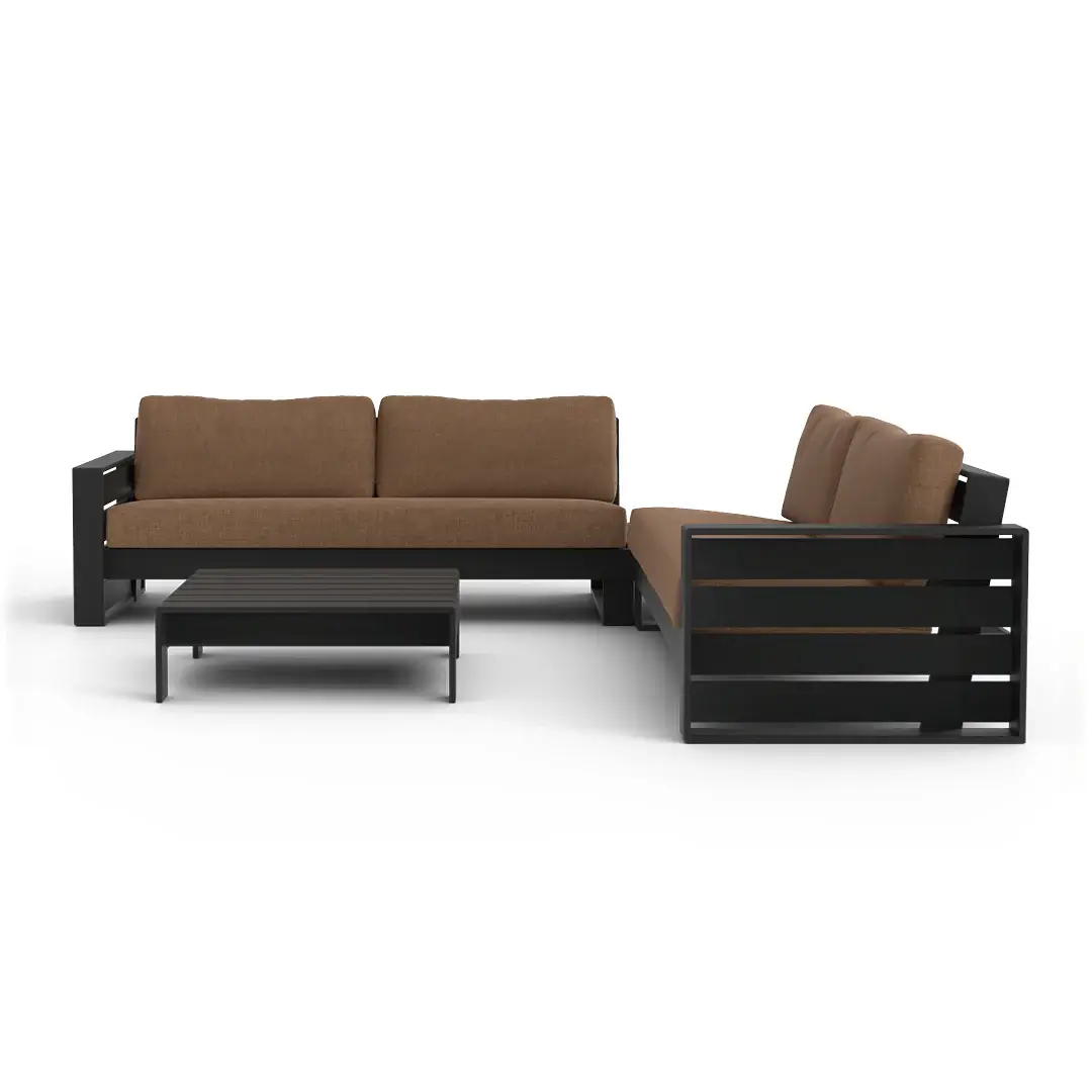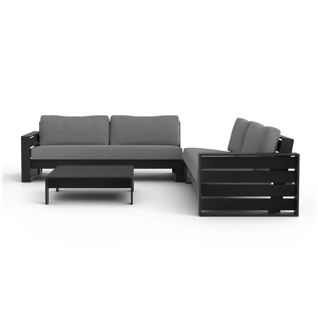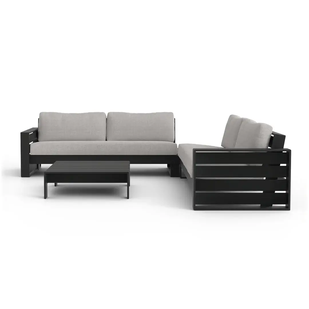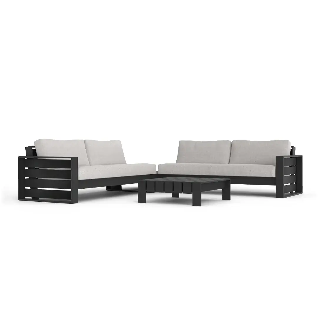 Elevate your outdoor living with the Elara Modular Outdoor Sectional — a sleek 4-piece aluminum set comprising left-arm and right-arm sofas plus two corner tables. Designed for flexibility, this modular set allows you to customize your layout and expand over time.