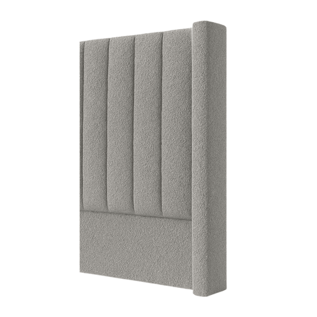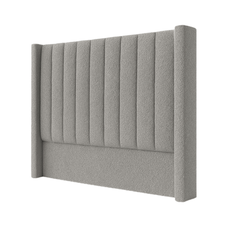 Elevate your bedroom with the Estelle Bouclé Wing Headboard, featuring a modern vertical panel design and plush upholstered finish using Bouclé textured fabric.