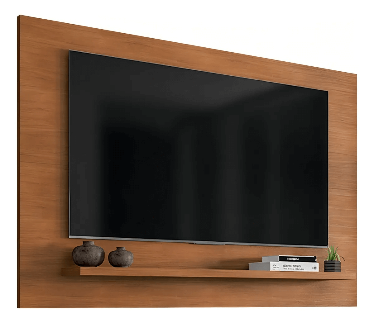 The Ferrel TV Unit is a modern wall-mounted TV panel designed for TVs up to 50 inches. Made from durable MDP with a semi-matte UV finish, it features a versatile shelf, cable management holes, and a sleek cedar brown look—perfect for stylish and organized living rooms.