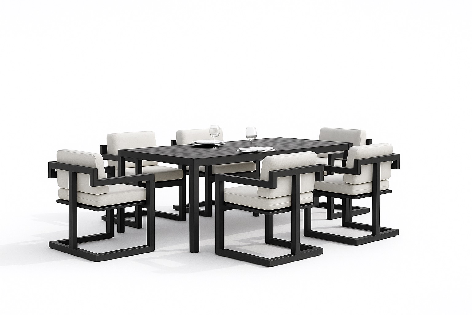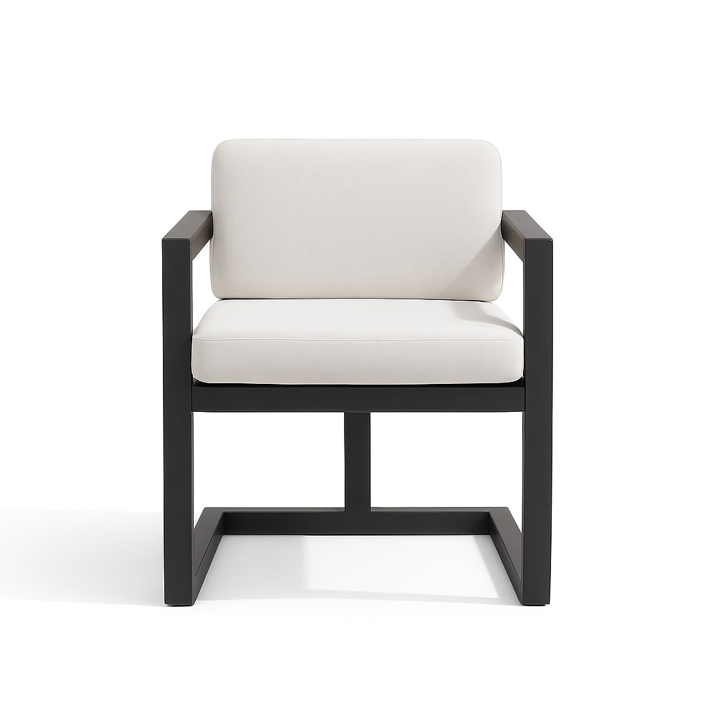 The Gabriella Outdoor Dining Set embodies modern elegance with clean architectural lines and premium craftsmanship. Built from durable mild steel in a matte-black powder-coated finish, this collection is both weather-resistant and strikingly refined. The linen cushions provide a soft, natural contrast — bringing comfort and sophistication to any patio, deck, or indoor space. Designed for easy DIY assembly, the Gabriella set transforms any setting into a contemporary retreat.