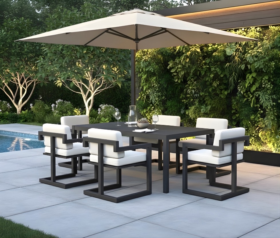 The Gabriella Outdoor Dining Set combines style and durability, featuring a modern design perfect for any patio or garden. Enjoy outdoor meals in comfort with weather-resistant materials built to last.