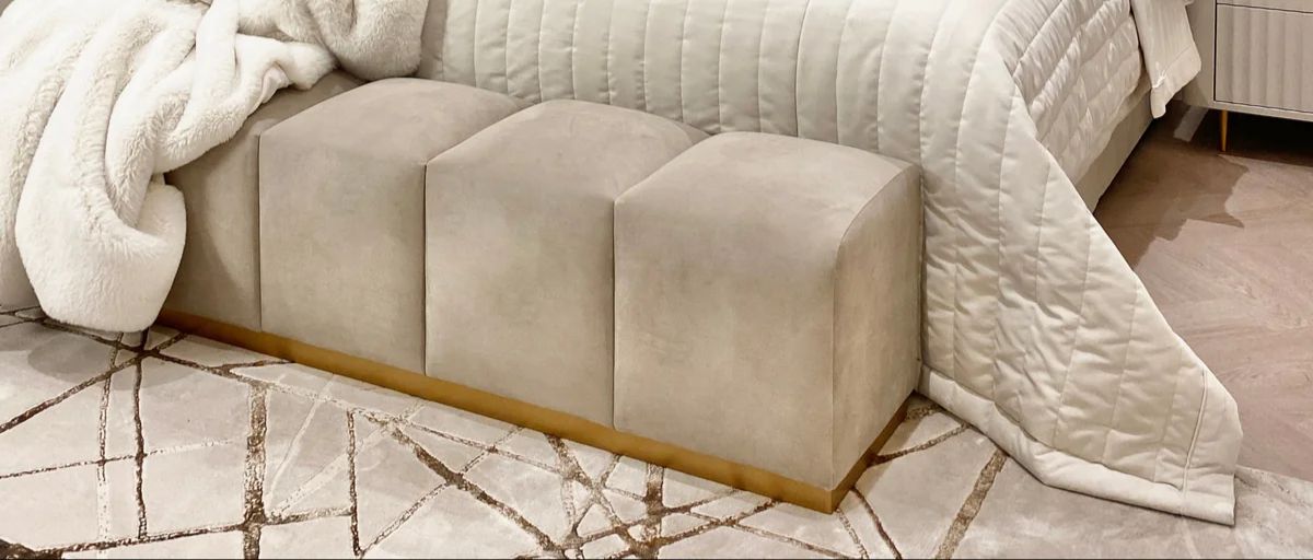 This gorgeous panelled ottoman looks stunning in classic, transitional, modern, or shabby chic homes. Its soft color looks crisp and fresh, while the fabric upholstery creates an inviting look for family and guests.