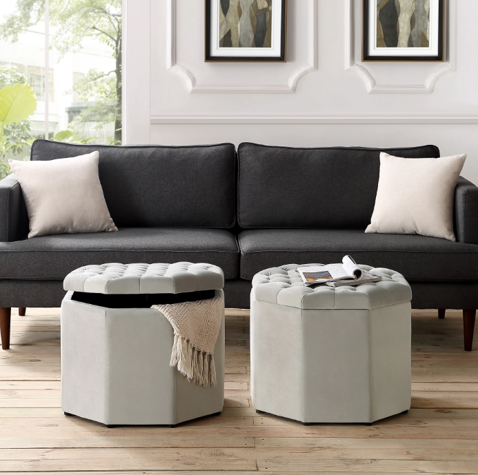 This stunning ottoman holds a hidden secret: a convenient storage compartment tucked away under the top. If you live in a small apartment or simply need extra space to keep your novelties, the storage ottoman is designed especially for you. Featuring soft fabric with tufting on top and the comfort of a high density foam cushioned seat this sophisticated piece provides not only dual functionality but also a focal point of style and flare that seamlessly incorporates your main decor to create an inviting and comfortable atmosphere to come home to.