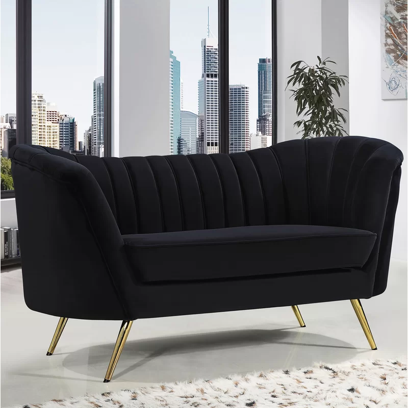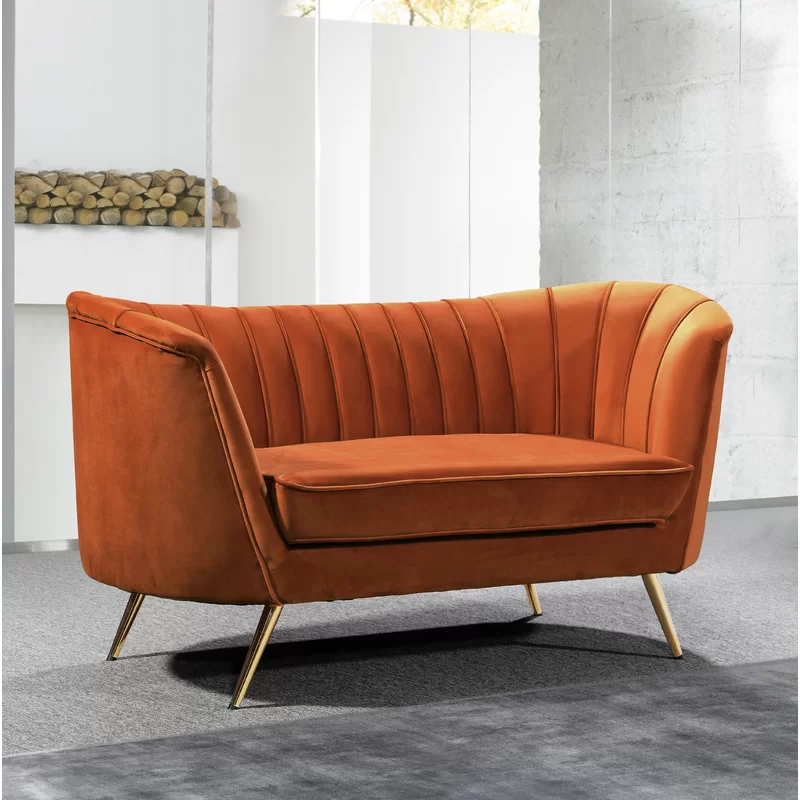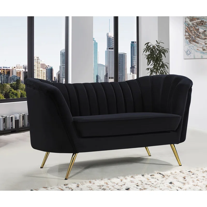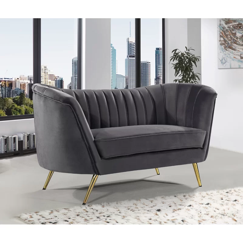 Lean back and lounge in luxurious style on this stunning loveseat. This glam loveseat features plush velvet upholstery that is both classy and sumptuous against your skin, a single seat cushion, and rounded arms that curve into a low, rounded back, creating a perfect, modern piece for your home. Gold stainless steel legs support this loveseat and provide a stunning contrast to the loveseat’s plush.
