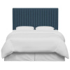 This headboard graces the bedroom with clean lines and a fully upholstered frame. Each made-to-order bed is upholstered by hand in a pale grey, linen-blend fabric with vertical channel tufting on the headboard. Attaching easily to any standard bed frame, the pumice-hued headboard instantly elevates the bedroom.
