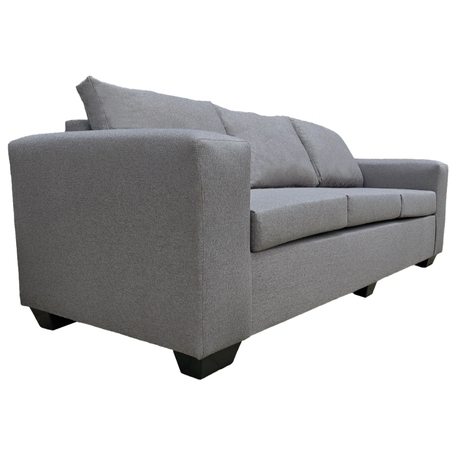 A modern cool grey 3-seater square arm sofa with durable fabric, firm seating, and reversible cushions for long-lasting comfort.