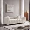 Curved teddy fleece sofa with high-rebound cushioning, durable metal legs, and modern sculpted design.