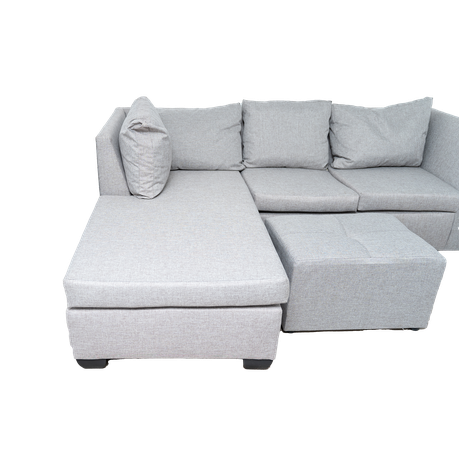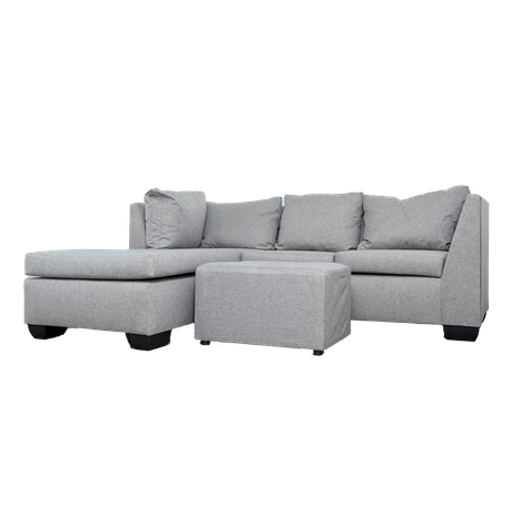 A modern left-hand corner 3-seater sofa with premium upholstery, adjustable headrests, and an included ottoman for ultimate comfort and style.