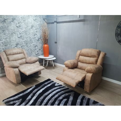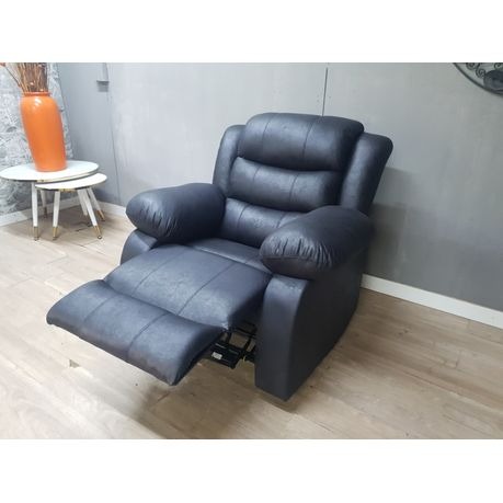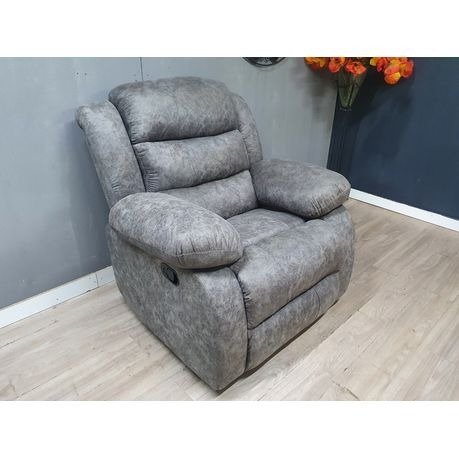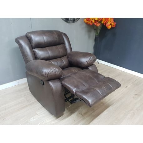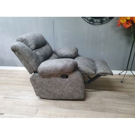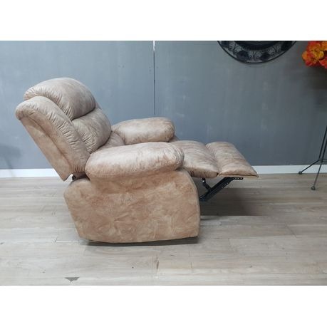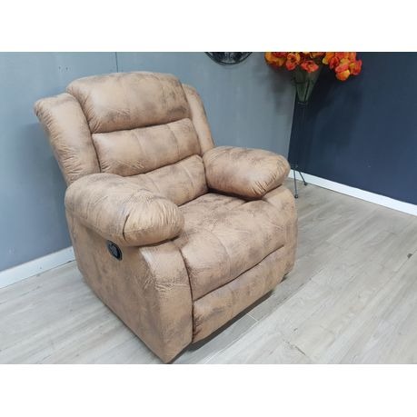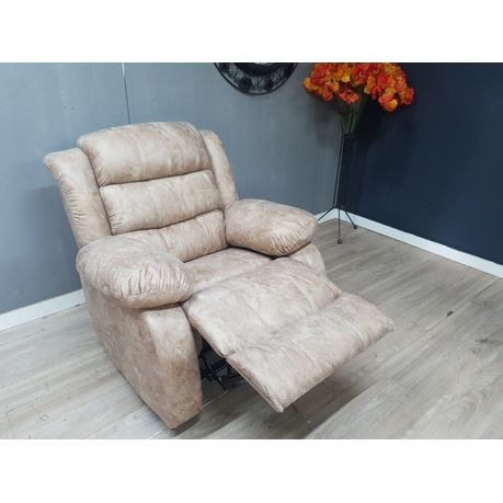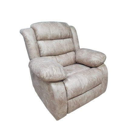 Firm buffalo suede recliner with high-density foam, smooth reclining mechanism, and premium comfort.