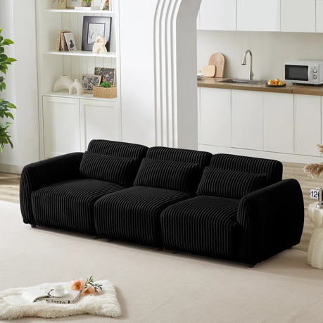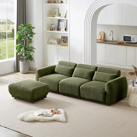 The movable ottoman allows you to customize the layout to suit your living space or personal preference, while the 250cm length offers ample room for family, friends, or cozy solo relaxation. The rich corduroy upholstery and classic design create a timeless look, perfect for modern, transitional, or traditional interiors.
