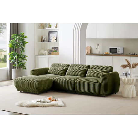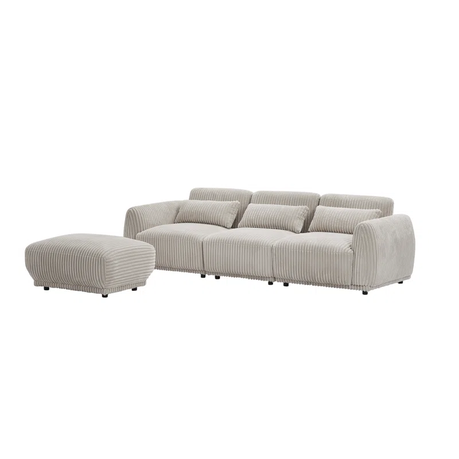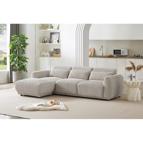 Lifestyle Elsa 3-seater corduroy sectional sofa with movable ottoman, spring-and-foam cushioning, and classic design—perfect for cozy, stylish, and versatile living rooms.