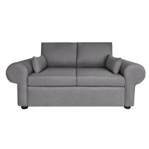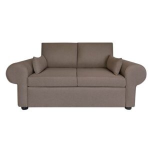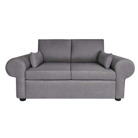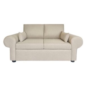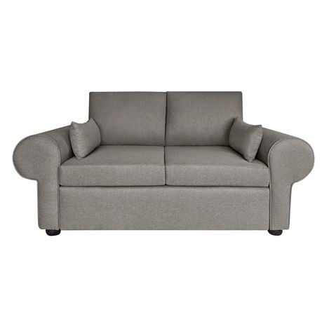 Modern 2-seater round arm sofa in compact box design with easy assembly, reversible cushions, and high-density foam comfort.