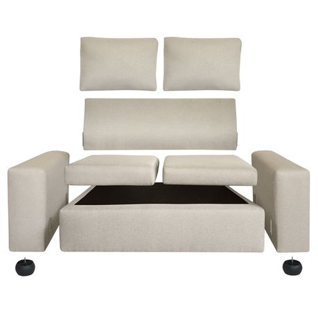 • Material: Fabric upholstery + high-density foam + sturdy internal frame + wooden feet