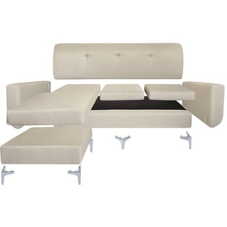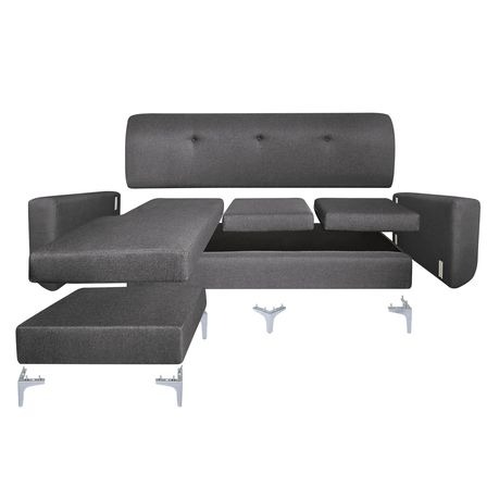 Ingeniously packaged to fit through any standard doorway or hallway, this sofa set includes a universal daybed ottoman that can be positioned on either the left or right, allowing you to customise your layout to suit your space. The durable polyester fabric, high-density foam, and reversible cushions deliver long-lasting comfort with everyday functionality.