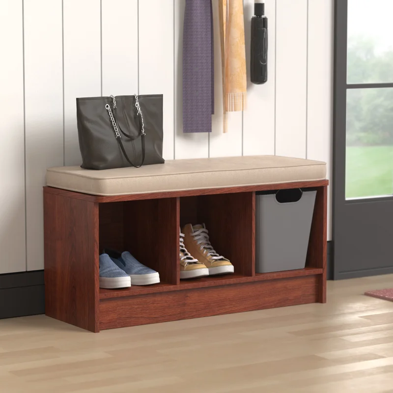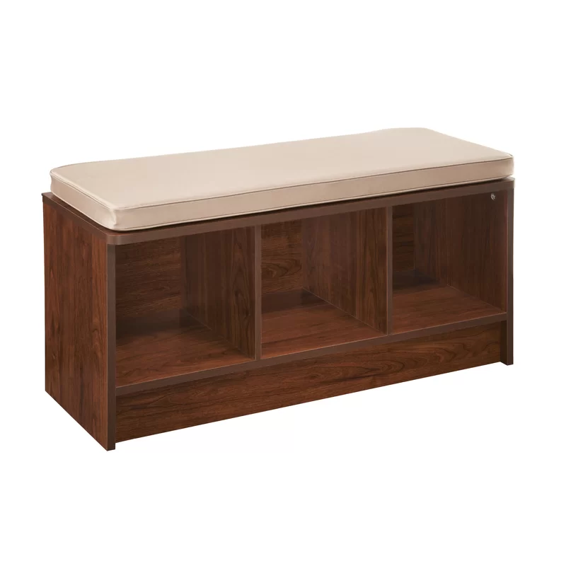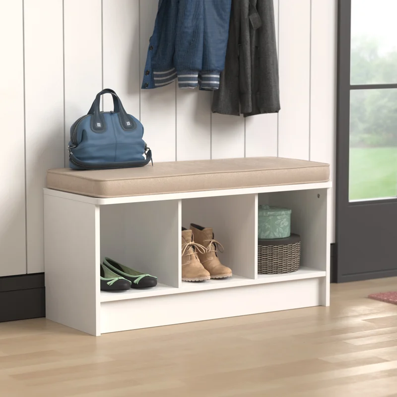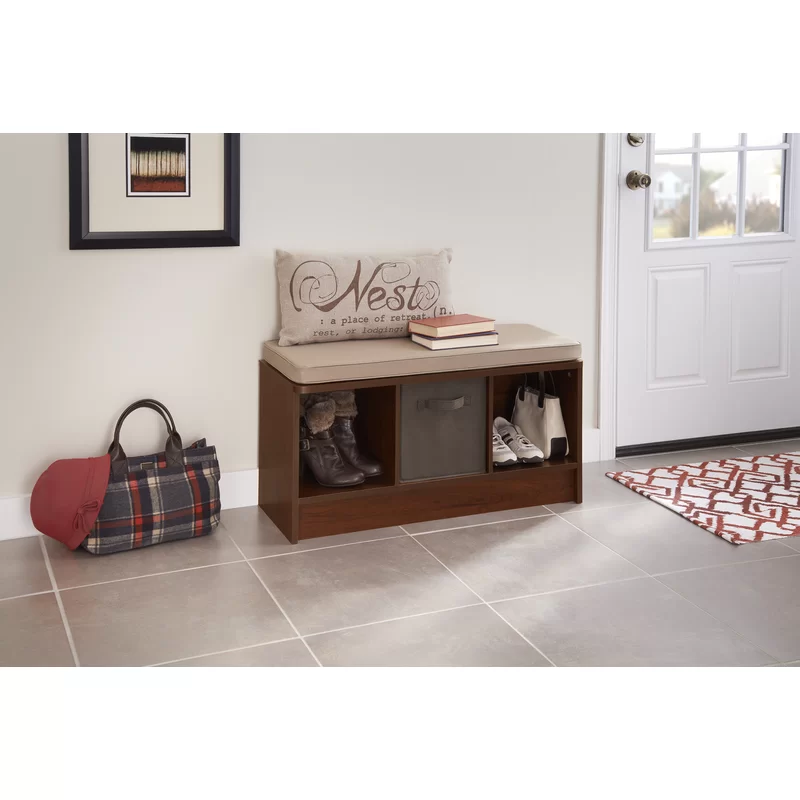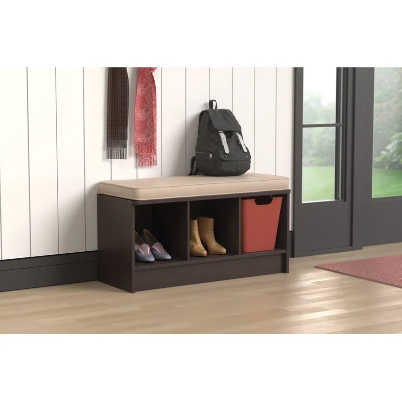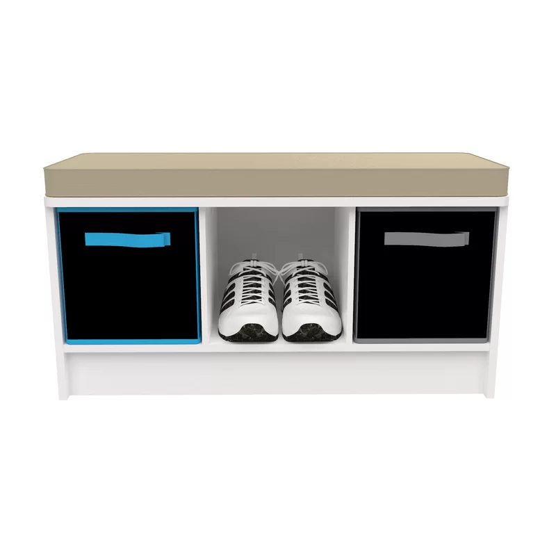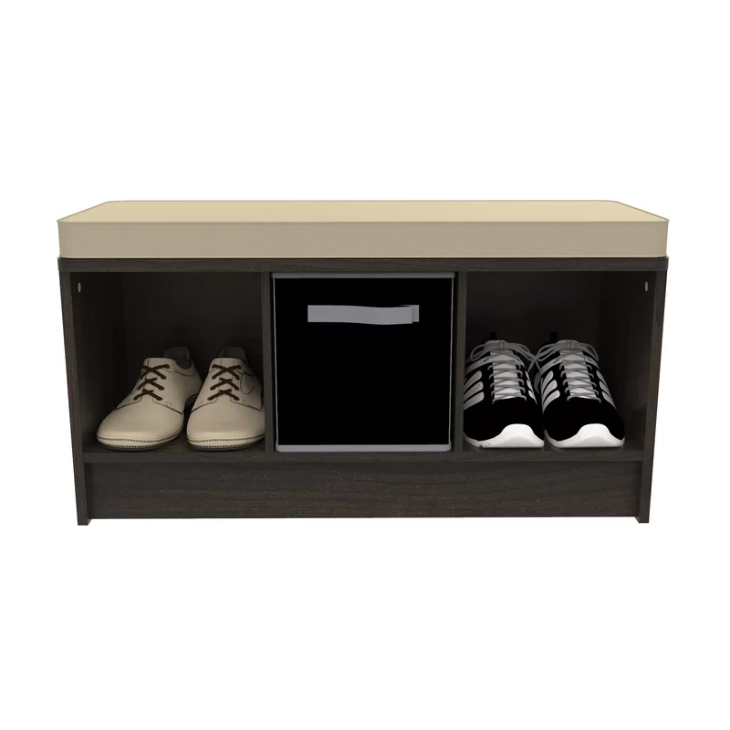 Lend a low-key touch to your entryway or den with this understated Cubeicals 3 Pair Shoe Storage Bench. Featuring a clean-lined, laminated wood frame with three open compartments, this storage bench makes it easy to keep sneakers and flats organized in the mudroom, while its included seat cushion gives guests a place to sit as they tie up their laces. The open compartments also make great storage solutions in the living room or office—the possibilities are endless. Suitable to store high heels!