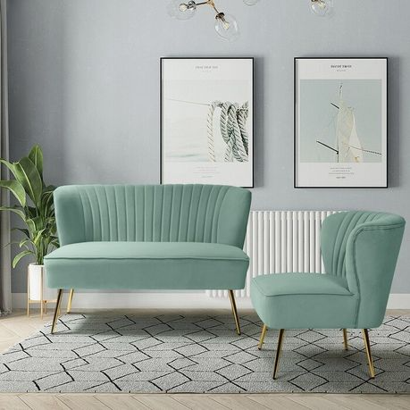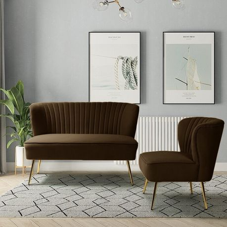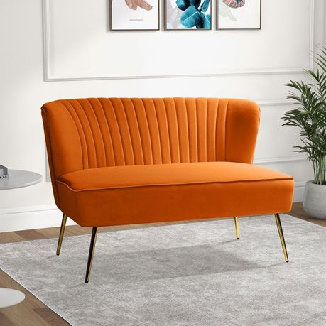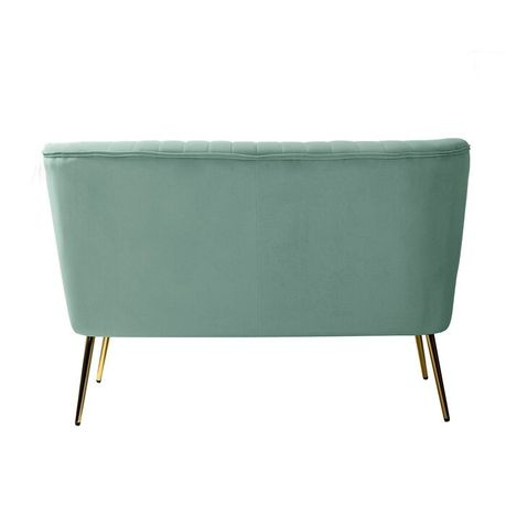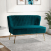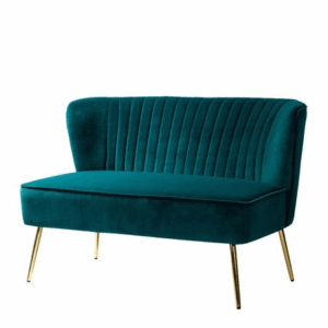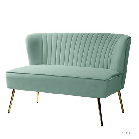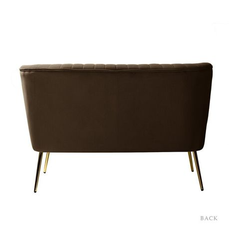 Constructed with a solid and engineered wood frame and supported by gold-finished flared metal legs, the Euclid 47 Loveseat combines durability with stylish retro appeal. Wrapped in soft velvet fabric, the seat features high-density foam and spring support to deliver comfort without compromising elegance.