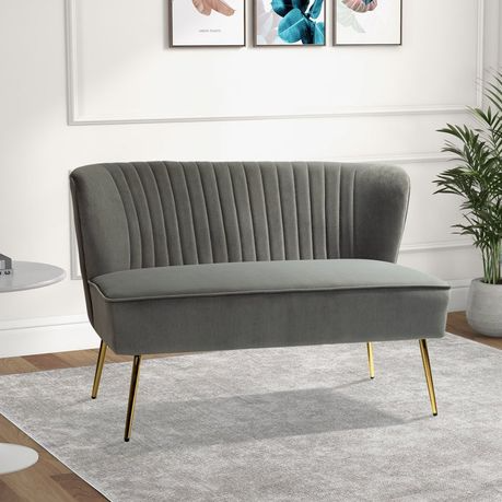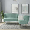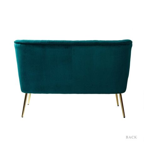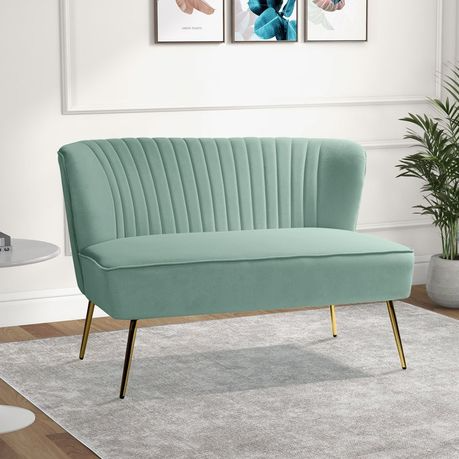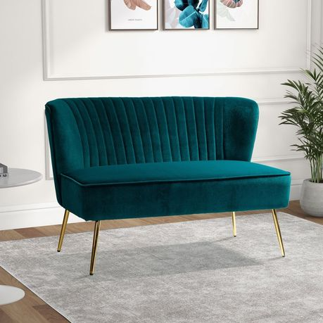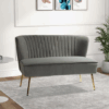 Lifestyle Euclid 47 Upholstered Loveseat features mid-century modern velvet design, tufted back, and gold-finished legs for stylish comfort.