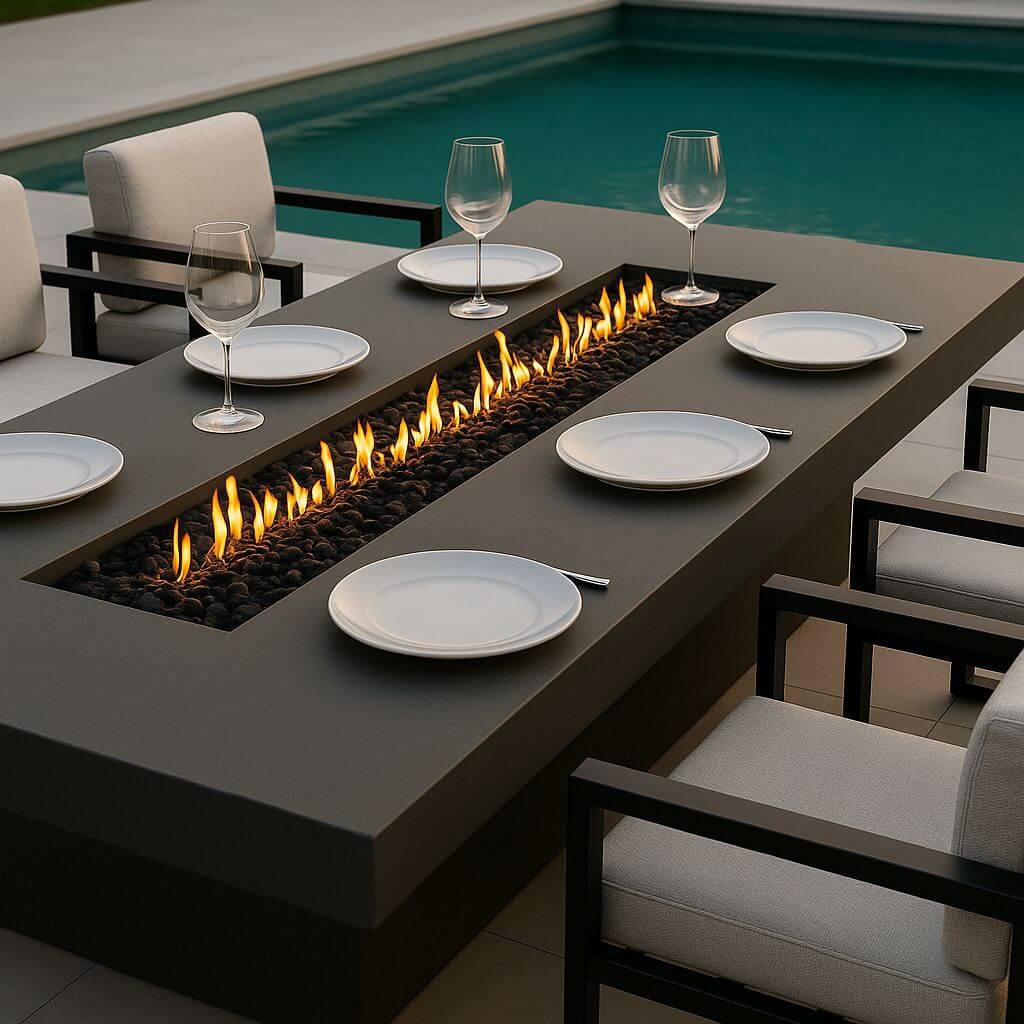 Experience luxury outdoor dining with the Lifestyle FlameTable Collection – a premium bioethanol-fueled fire table designed to impress. Available in 6, 8, or 10-seater options with sleek, modern finishes and over 10 chair colour choices. Bring style, warmth, and ambiance to your outdoor space.
