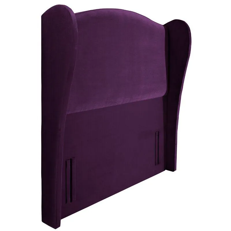 The Stunningly tall design with exaggerated winged detail gives a sumptuous look and feel. Upholstered by hand in a soft, high-quality velvet fabric.