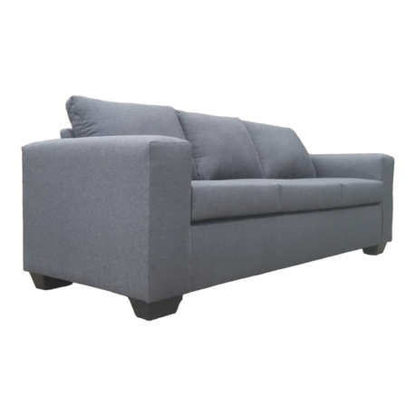 A modern grey 3-seater square arm sofa with firm foam seating, durable fabric, and reversible cushions for long-lasting comfort.