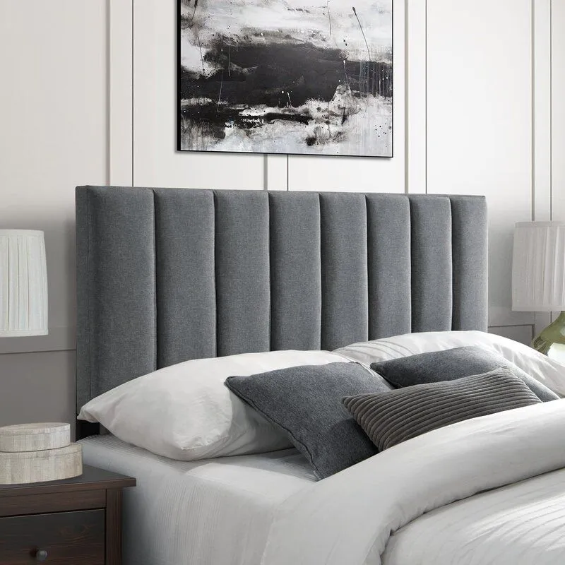 Crafted from a wood frame, this panel headboard is upholstered in polyester with foam filling for a cushioned touch. Channel tufting and a clean-lined silhouette round this piece out with modern touches.