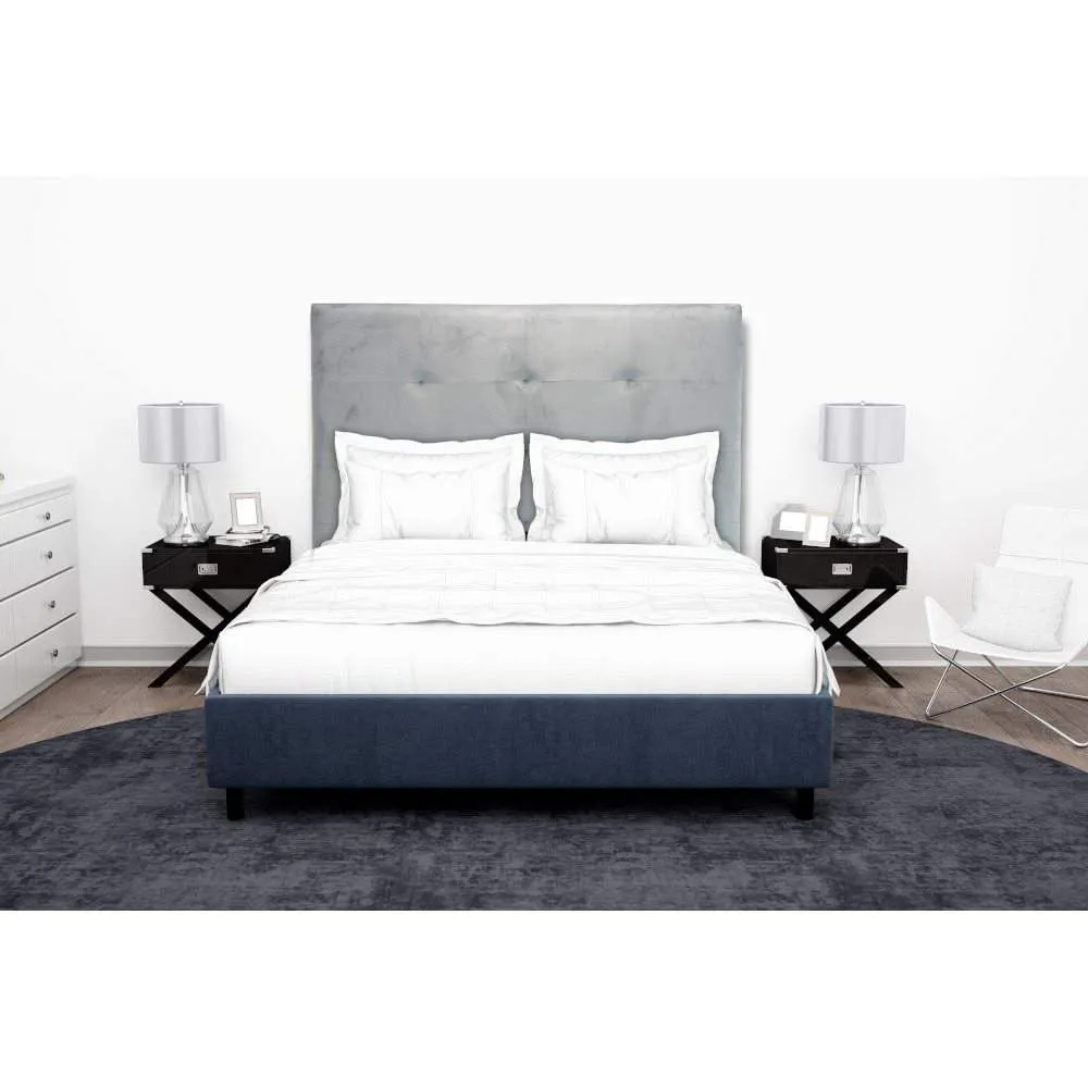 Add a contemporary look to your bedroom with this easy to fit Olivia Queen sized headboard that is able to fit any base. This gorgeous piece looks stunning in classic, transitional, modern, or shabby chic homes. Its soft colour looks crisp and fresh, while the fabric upholstery creates an inviting look for family and guests.