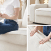 Material: Bouclé fabric, high-density foam, reinforced wood frame