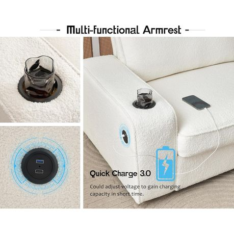 With built-in USB Quick Charge 3.0 ports, you can power your devices with fast, stable charging while relaxing. The integrated cup holders bring added convenience, allowing you to enjoy beverages without cluttering your space. Its oversized deep seat, 22cm wide armrests, and high-density cushioning provide exceptional full-body support—ideal for families, couples, or anyone who loves spacious seating.