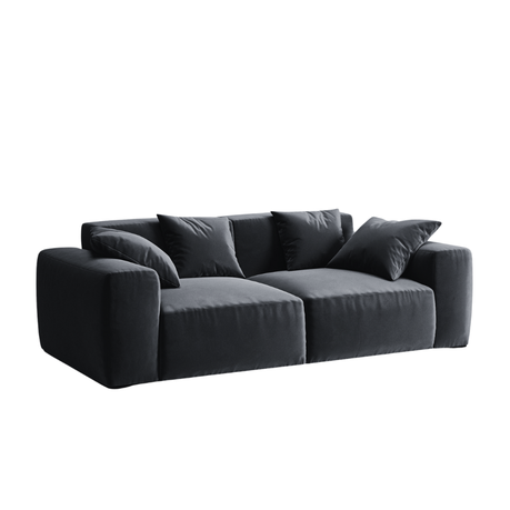 Featuring a two-piece modular design that clips together effortlessly, this sofa combines practicality with sophistication. Its sleek silhouette and rich velvet finish bring a touch of modern luxury to any home, while its compact yet generous dimensions make it suitable for a variety of spaces.