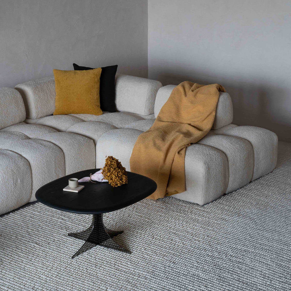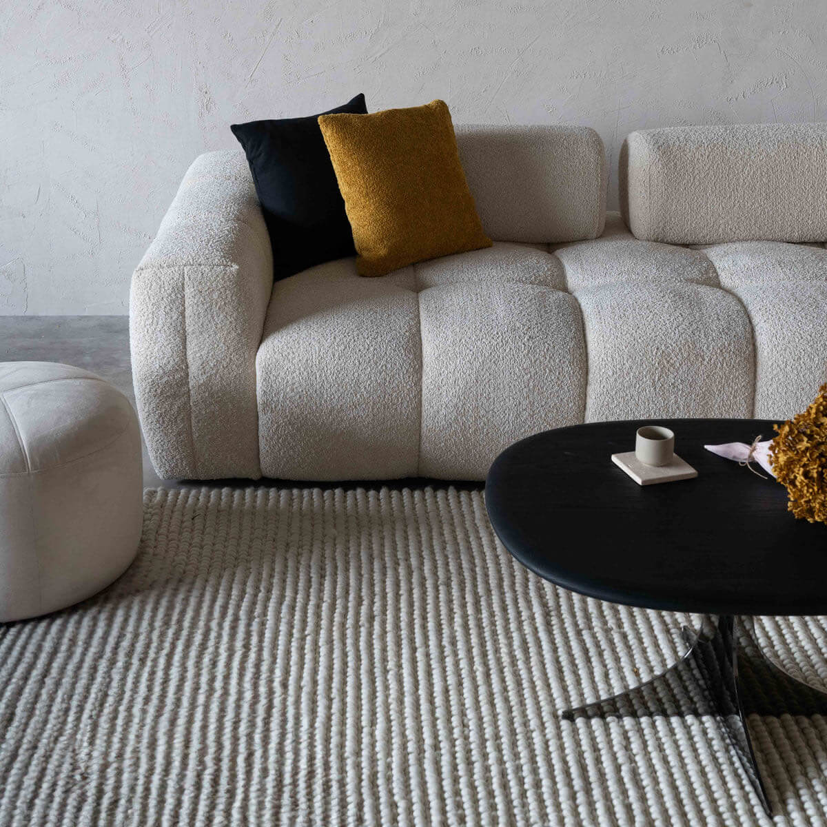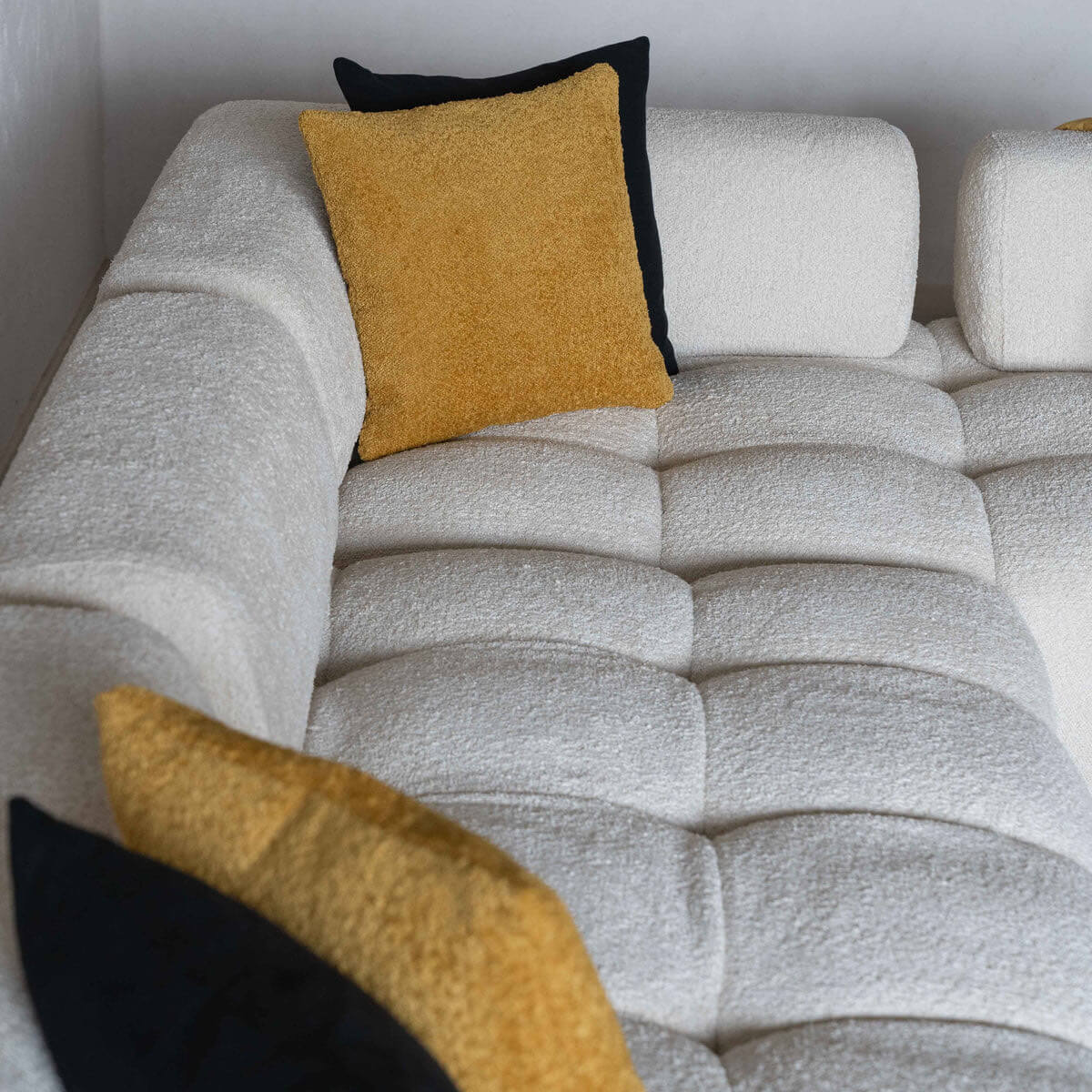 The Louisa Modular Bouclé Couch combines luxury and comfort with its soft textured fabric and customizable modular design. Perfect for modern living spaces, offering elegance, flexibility, and cozy relaxation.
