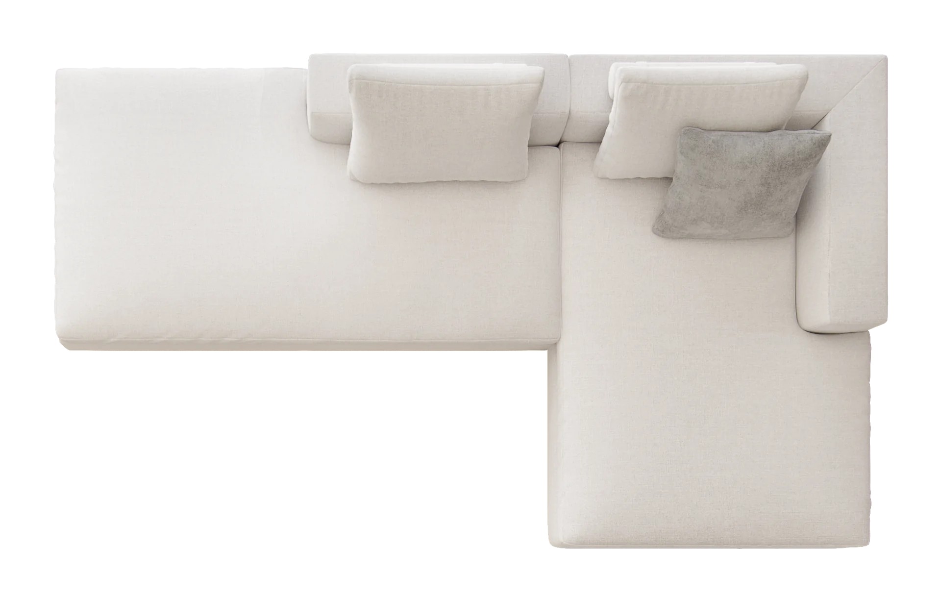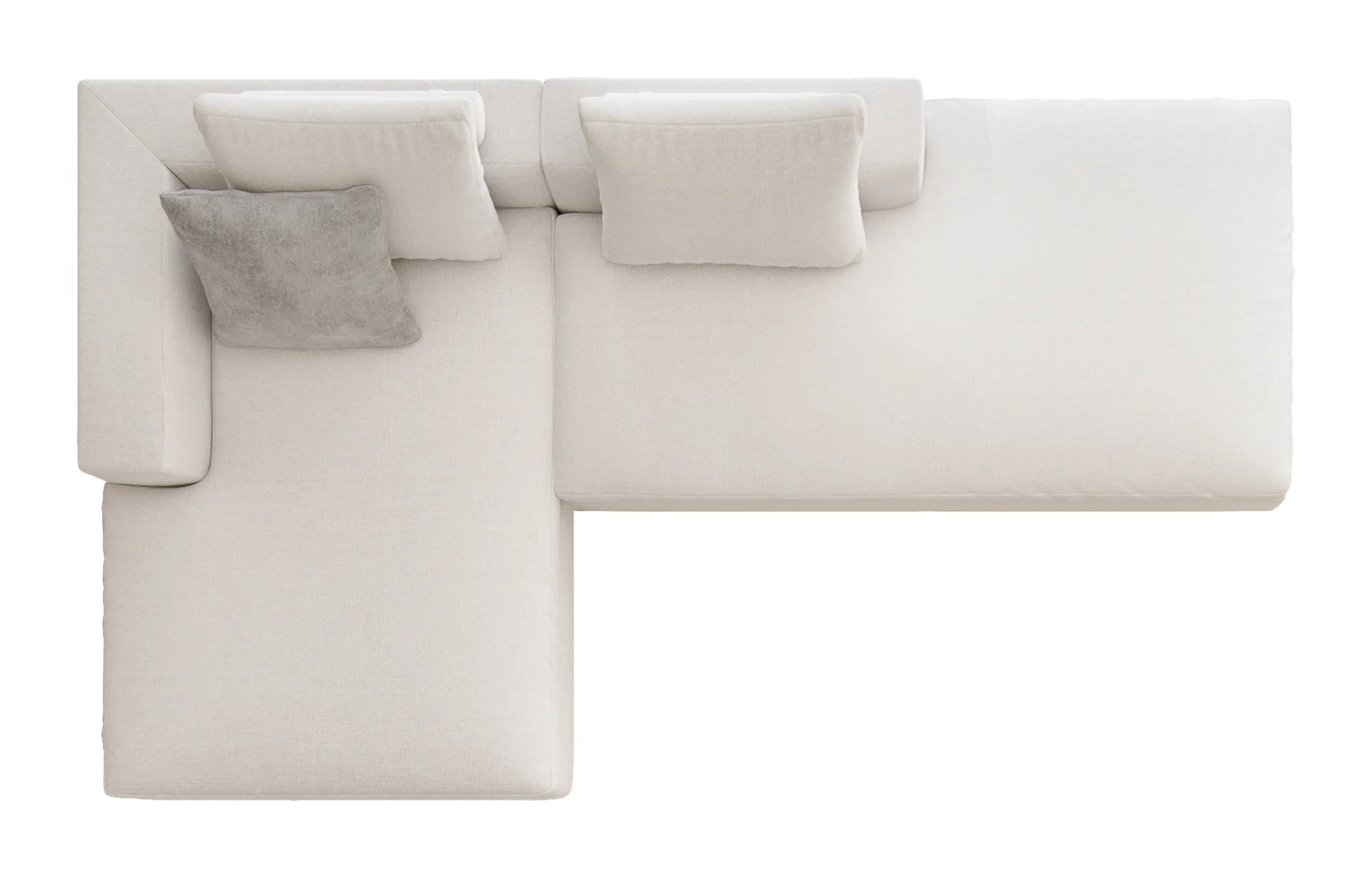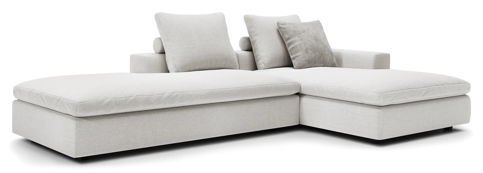 Perfect proportions and a relaxed fit can take Lucerne from casual to formal in any living space. Superb comfort is highlighted with a single, deep, bench seat filled in feather and down. Backrest pillows and oversized throw pillows (in accentuating fabric) provides both structure and casual relaxation. Round, decorative, bolsters keep the back pillows from sliding. Finished in rich, textured fabrics in basketweave patterns. Sofa frame made of solid alder wood. Hidden, recessed legs lift the frame off the floor. Sofa configuration as shown includes one left-facing end unit and one right-facing chaise unit.