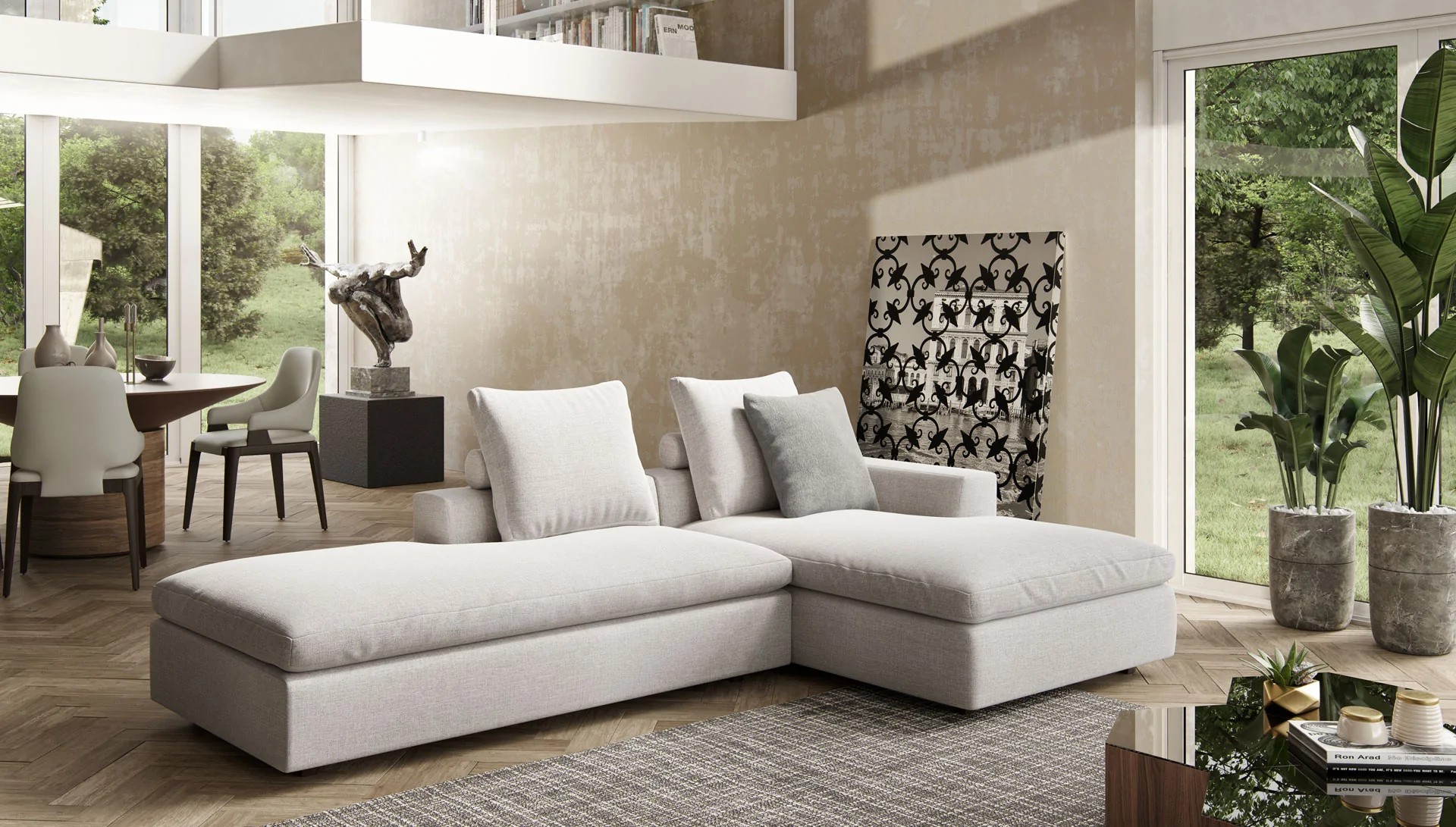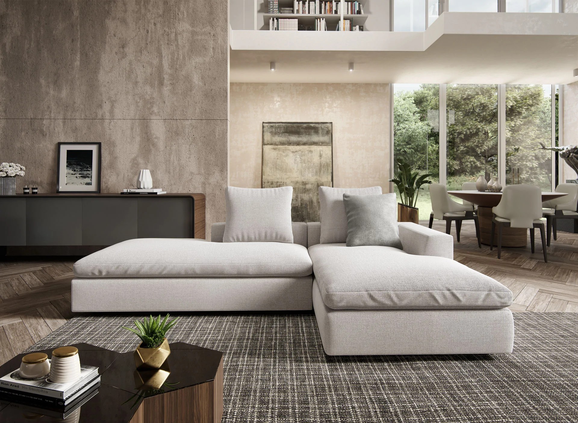 INSPIRATION STRIKES WITH THE LUCERNE, A LOW PROFILE CONTEMPORARY SOFA HAVING WIDE ARMRESTS AND A LOW FRAME.