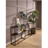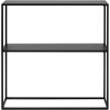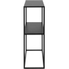 This Marcell Black Steel Shelf console in the sleek, modern design will fit in all its usefulness in your hallway, bedroom or living room. It is ideal for use as a small top cupboard, the black metal console has two shelves. With its contemporary design, this black metal console input allows you to optimize the space while having a table for placing a lamp or another decorative item.Â