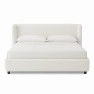 The modern boucle bed from the Allure Collection offers a soft yet structured aesthetic with its curved wingback headboard and textured boucle fabric. Designed for contemporary homes, it brings style, serenity, and sophistication to your bedroom space.