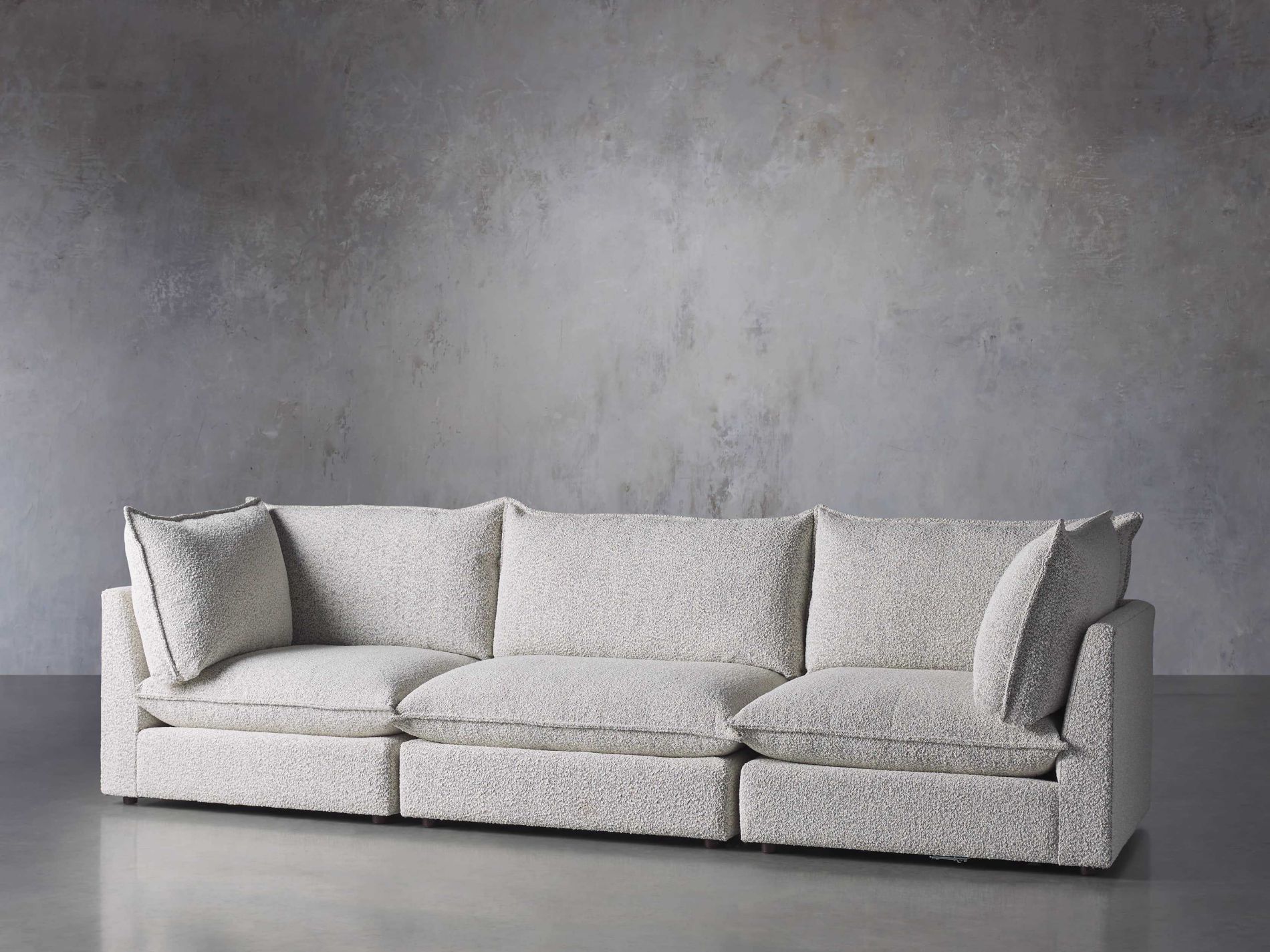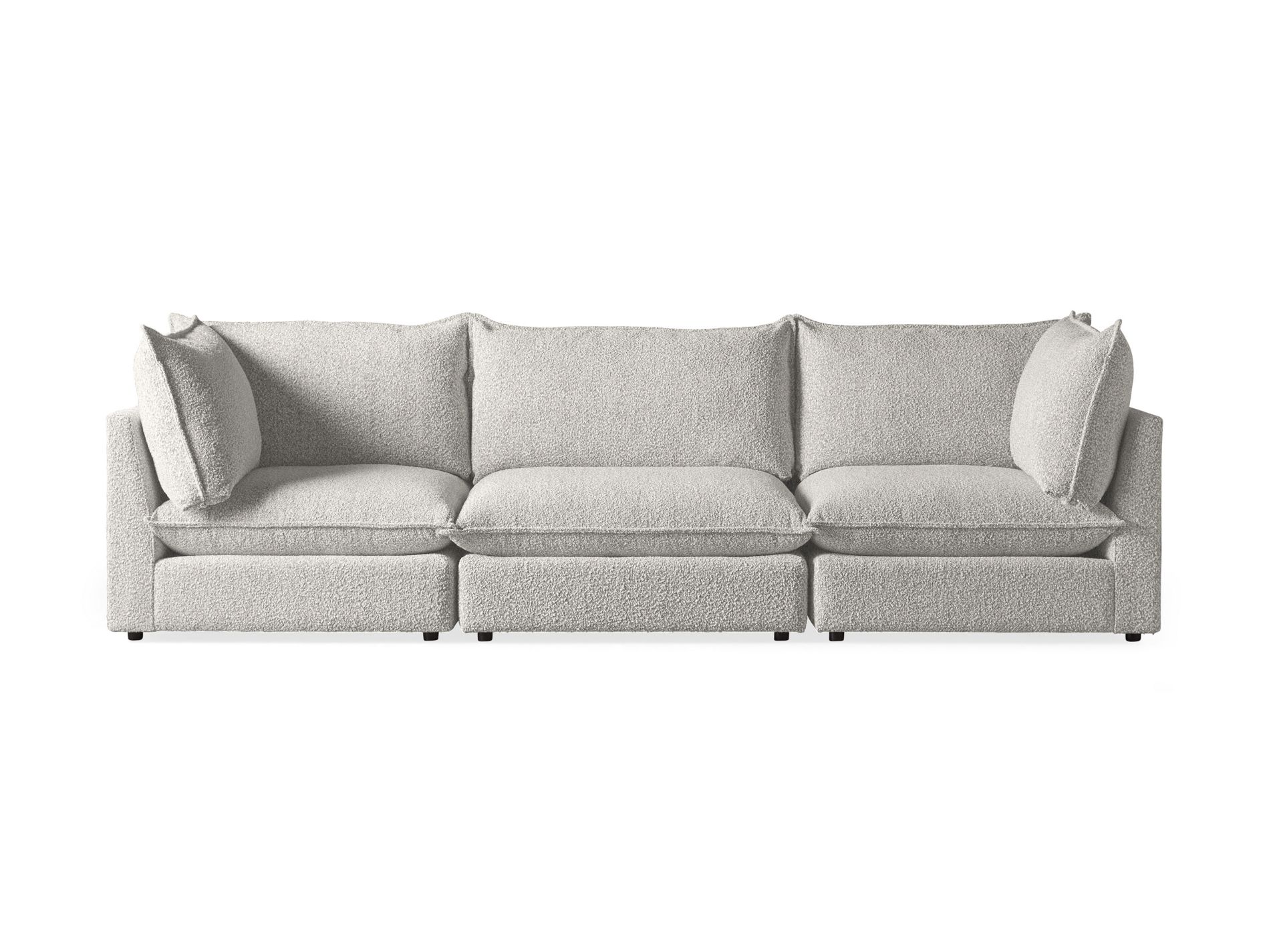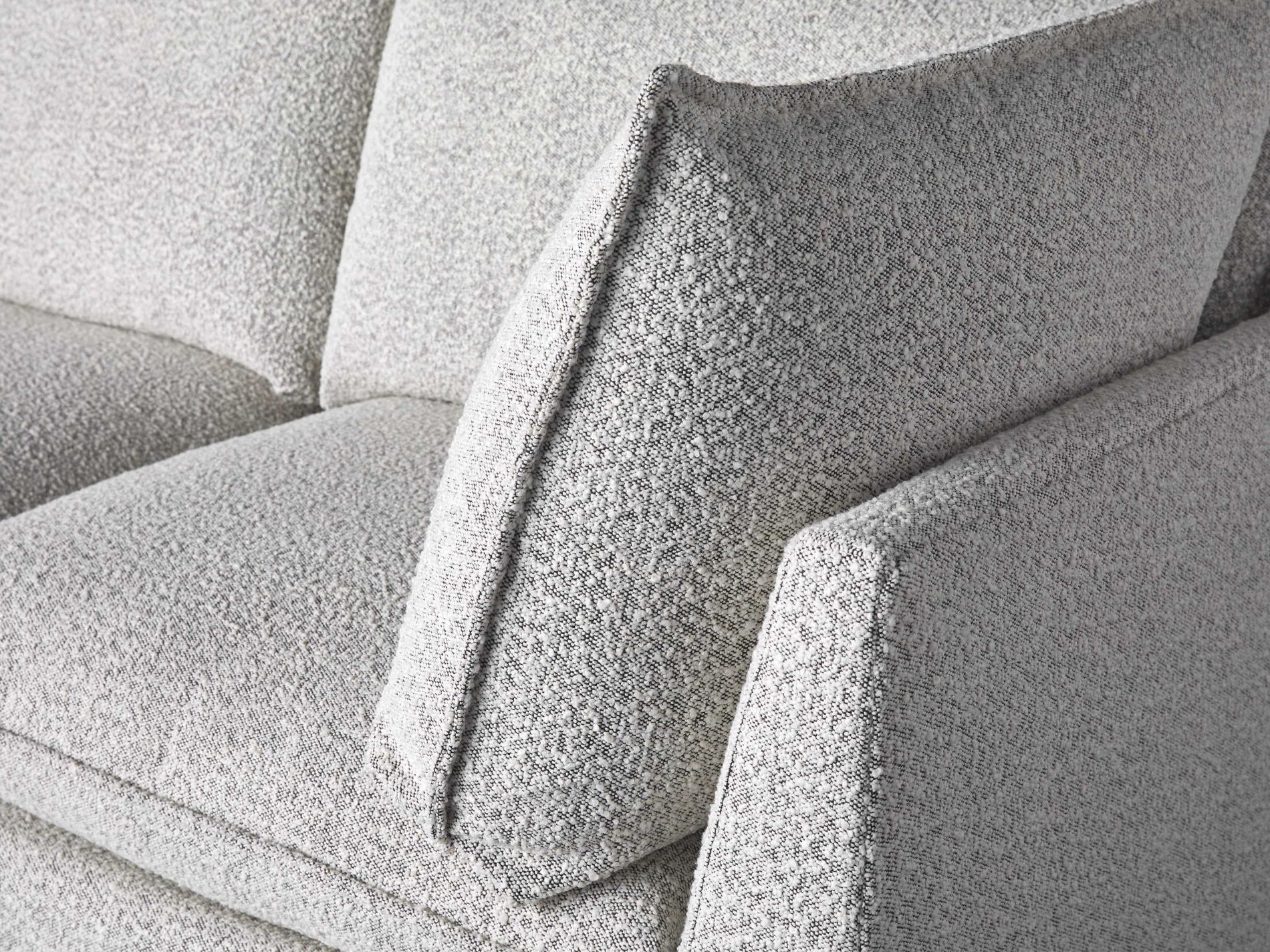Surround yourself in Scandinavian-inspired comfort. Upholstered in rich, textured boucle performance fabric, reminiscent of salt and pepper, our new Owen Sectional Collection offers deep seating and cushions you’ll sink right into. Modular designs can be arranged to fit living spaces both small and spacious, allowing you to craft the perfect arrangement for your home