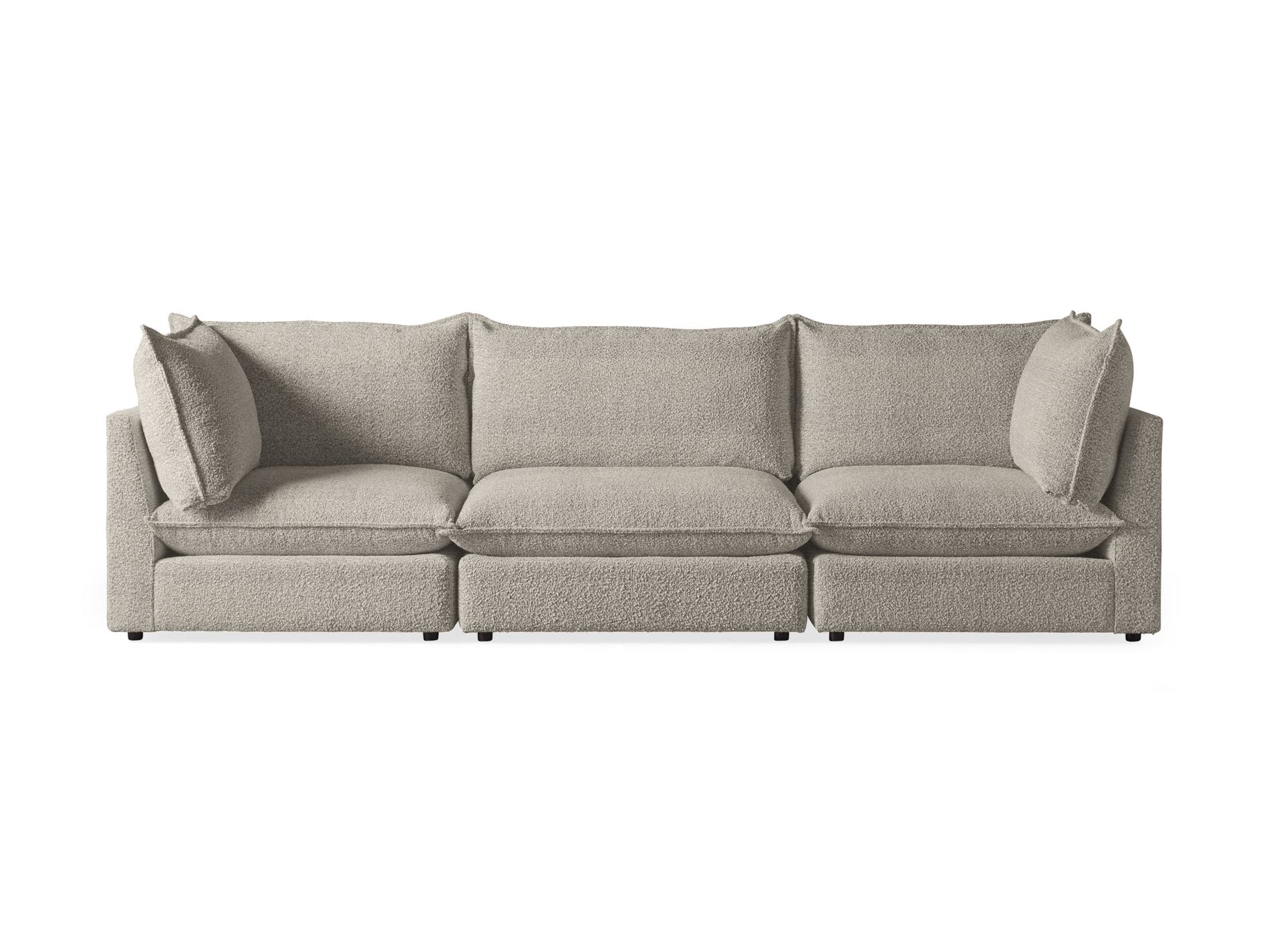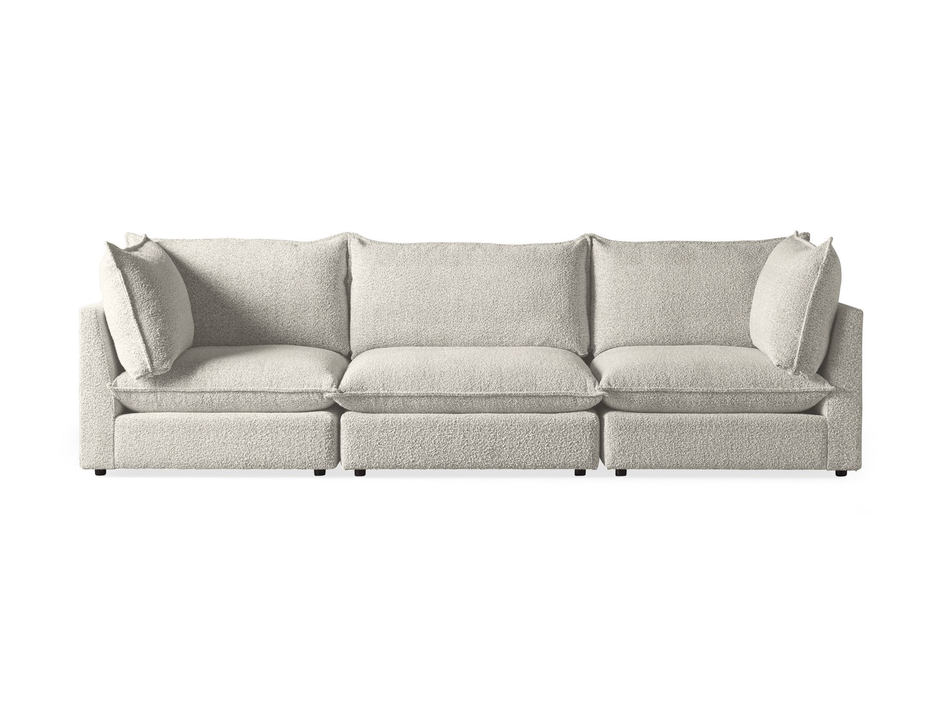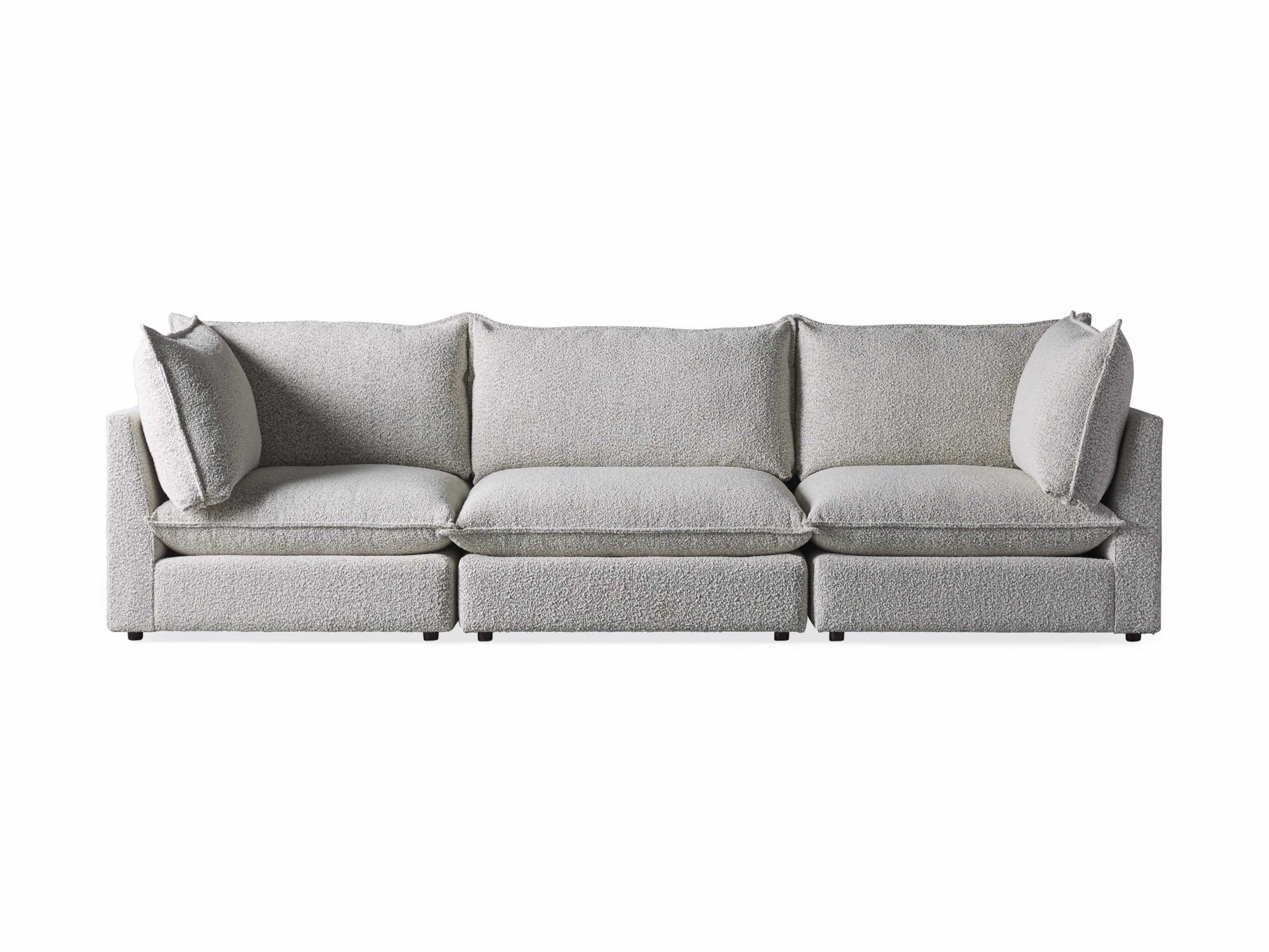 Surround yourself in Scandinavian-inspired comfort. Upholstered in rich, textured boucle performance fabric, reminiscent of salt and pepper, our new Owen Sectional Collection offers deep seating and cushions you’ll sink right into. Modular designs can be arranged to fit living spaces both small and spacious, allowing you to craft the perfect arrangement for your home
